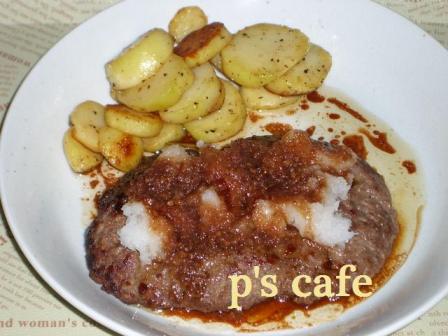 久しぶりにハンバーグ♪多分・・・一人前、300g近いはず(笑)付け合せはモチロン芋!!!ガーリックポテト♪