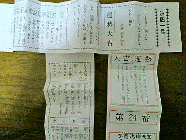 3枚揃って大吉なんて、きっと後にも先にもないだろうとくじを持ち帰って日記帳に貼り付けた。楽天クジもそうだけど、くじの記録を残しておくと、年単位&月単位で自分の運の流れをつかみやすくなるような気がする。 おみくじ用の細かいお金を調達するためにボート乗り場前の自販機でジュースを購入した。近所では見かけないので珍しいような程よく甘くて美味しかった。