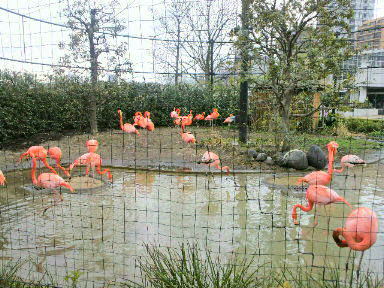 さすがに雨の日は、カンガルーも屋根の下で雨宿り。フラミンゴは夢に出て来た光景を思い出して、いろいろ撮ってみた。