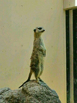 トラは1階と2階両方から見られる。1階にいたときトラは上にいて、2階に行った時には下にいて。偶然とはいえ見事なすれ違いライオンはポカポカひなたで昼寝中。さすが夜行性隣にいるミーアキャットは忙しなく動き回っていた。時々山の上に立って見張りポーズ
