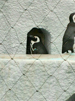 あいにくの天気で、晴れてるとハッキリ見えるスカイツリーもうっすら。桜が良い感じのポジションなのに、惜しいペンギン、壁のトンネルにいると窓辺でたそがれているように見えた