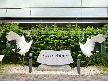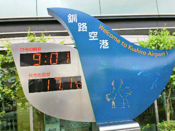 ホテルの2階に製氷機と自販機があったので、水筒に氷を入れて買った水を水筒に移して関東へ持ち帰った。 最終日の朝もうす曇りで過ごしやすかった。釧路空港、入口にいろんな動物像があったので、探索ついでにパチリ