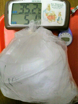 書いてもしょうがないんだけど暑い。寝汗で起きたら既に30度超え、たまらん 昨日荷作りや掃除をしてたら35度超えたので、今年1月に降った大雪袋を解放。すさまじいスピードで溶けていったが、雪の冷却効果か?雪を出した途端に部屋の温度が少しずつ下がり始めた。半端なく冷たい雪解け水は、ベランダや窓にまいて打ち水として使った。あぁ神様、せめて普通の暑さにしておくれ・・・。