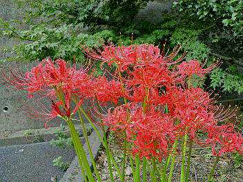朝顔とゴーヤばかり気にしていたけど、近所もふと見ると駐車場の花壇に彼岸花が。毒があるから(かぶれるから?)触ってはいけないという話を聞くが、どの部分に毒があるんだろう? そっと見るだけにしておくのがふさわしい花であることは間違いない。