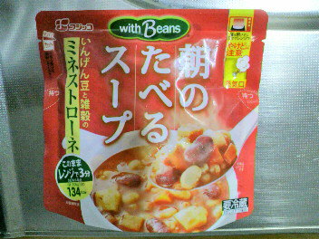 これもちょっと遠くのスーパーで発見。袋ごとレンジで温められるので、忙しい朝に手間いらずで便利。これから食べるので味はまだわからないけど、具だくさんできっと美味しいはず。