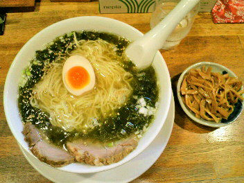 こちらは激セマ系?ラーメン店のようだ。席が8~10席ほどしかないので、早く行かないと座れない。ピークタイム前に行ったので待たされずに済んだが。味はあっさり系で海老ダシ系統もあるが、私はのりがたっぷりの磯ラーメンを選択。メンマは100円で追加可能前回行ったこってり系のカミナリラーメンとは対極の味になるけど、こういう味も好きだ