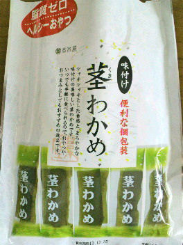 坂を上った先にあるスーパーでゲット。個包装だからか、たくさん入ってるように見えた。が、開けてみたら小さいサイズの茎わかめまで個包装してあった。確かに食べ過ぎると腹を壊すので良くないけど、2枚で1袋でもいいんじゃない?って思える大きさの物が半数近くあった。美味しかったけど、個包装でカサ増し感が最後まで残った。