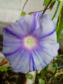 朝晩が涼しくなっているこの頃。晴れるとベランダは太陽の力で暑くなるからか、まだ朝顔もゴーヤも現役のまま。余談だけど青い朝顔、朝見たときは青かったのに夕方には赤紫色に変化していた。色が変わる朝顔ってコレのことだったのかと、今頃気がついた。