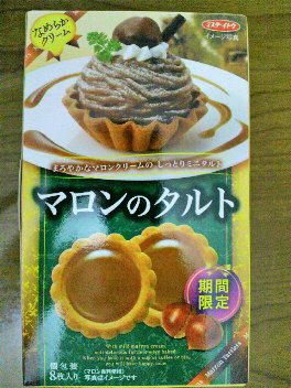 冷蔵しなくても食べられるマロンタルト、イチゴの方と迷ったけれど期間限定らしいのでこちらを選んだ。マロンペーストが想像したよりちょっと甘くて、オレンジ色の栗きんとんを食べてるような気分。マロン味大好きな夫に進呈