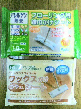 引っ越し掃除の際、ウエットシートを猛烈な勢いで使ったので改めてフローリング用のを購入。使ったら、しばらく床がシットリ&ピカピカに手軽に掃除できるっていいな。余談だけど、やっぱり家の掃除をした日は楽天くじが当たりやすい。(掃除した日はダメでも翌日に当たったり)スーパーやコンビニ等の募金箱に10円玉をチャリンと投入して、更に運気アップも忘れない