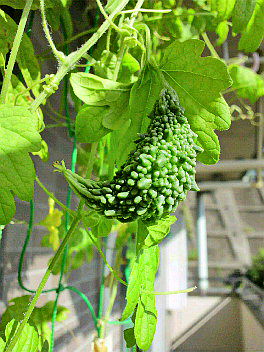 朝晩が涼しくなってきて秋の気配だけど、受粉が叶ってまた実がなった。今回のは曲がりゴーヤ(笑)日中の日差しの暑さで大きくなってほしいものだ。