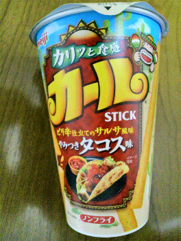袋菓子のカールも大好きだけど(いつもチーズ味かカレー味どっちにしようか迷う)、スティックタイプはいろんな味があるからお気に入り。このタコス味も辛そうなイメージだけど、ほとんど辛くなく旨味が効いているのでつい食べ過ぎてしまいそうになる。