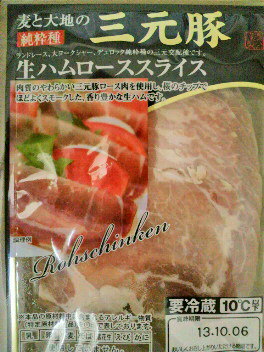肉類はよほど腹が減ってないと、ガンガン行こうぜ!って思わないけど、生ハムは別。さすがにそのままだと美味しいけどしょっぱいので、この頃は付け合わせの野菜と一緒に食べることが多い。生ハムを最初に作った人に感謝状を贈りたいくらい好き