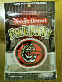 テングといったらビーフジャーキーだけど、ポークを発見!食べてみたら、ビーフよりも柔らかめで食べやすかった。おまけに値段もビーフより200円ほどだけど安かった。味の好みもこっちに傾きそう