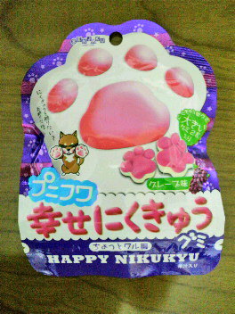 肉球グミは坂の上のドラッグストアで発見、ピーチ味と迷ったけどこちらにした。白い部分のグミとマシュマロを足して2で割ったような食感がたまらん一袋98円だから、今度は味違いも買ってみよう。プリン味マシュマロも、ふわプニで美味しかった!