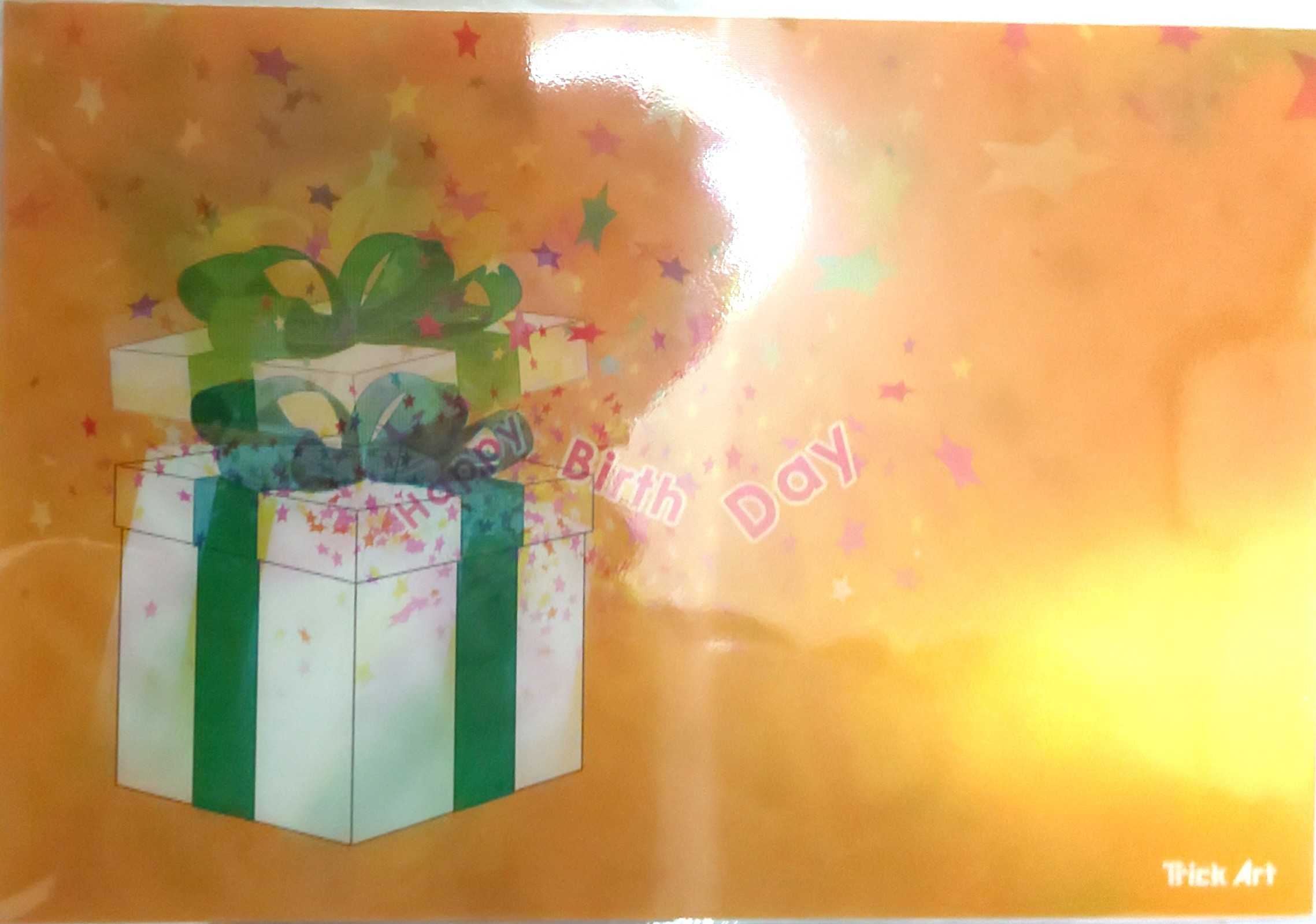 熱海トリックアート館内の土産店で購入。写真は2枚だけど、実際は4パターンあるので、最初と最後だけ載せてみた。プレゼントの箱から、だんだんと星とハッピーバースデーの文字がでっかくなって出てくるという仕組みの絵。これを誰かの誕生日に贈れば、喜ばれること請け合い!