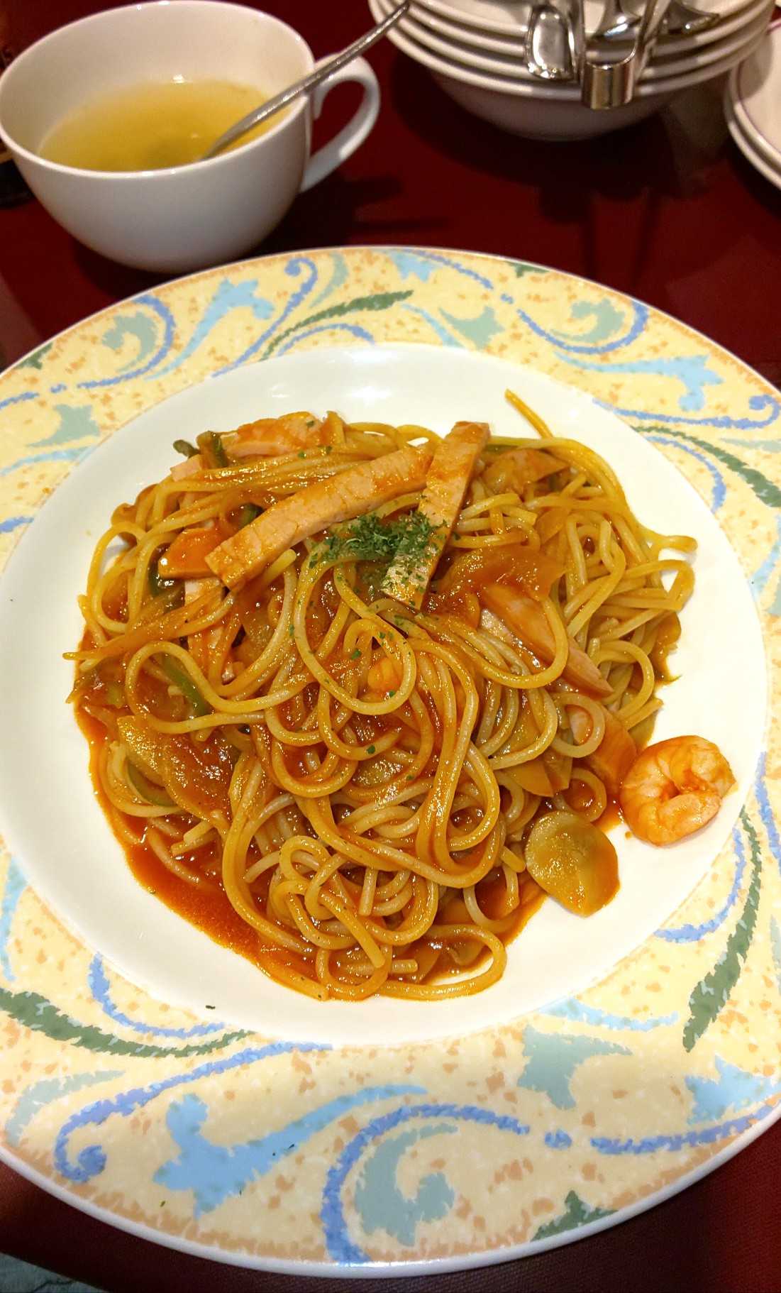 毎月は無理だけど、3ヶ月に1度は行きたい名店レストランのサンセール。まずは牛モモのたたきから、前回や前々回も食べたお気に入りの前菜。つまりはローストビーフだけど、味付けが和風なので夏でもさっぱりと食べられそうだ。ナポリタンは3種類あって写真の細麺と太麺タイプ、そして目玉焼き付き&ソーセージ付きがあった。ハムだけでなくちゃんとエビが入ってる所が好きだ。