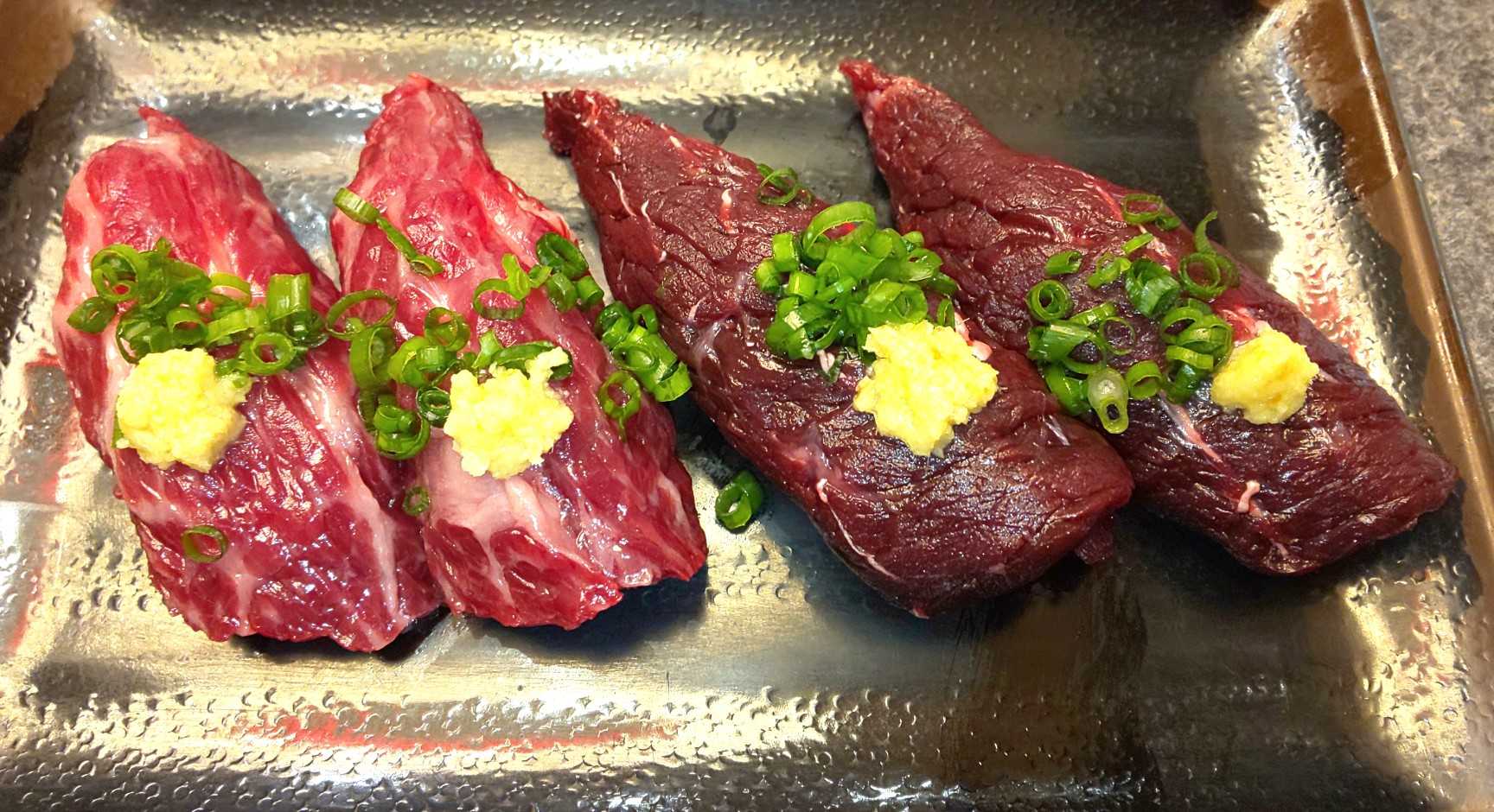 クジラ肉と馬肉は、マトモに食べるのが本当に久しぶりで嬉しかった。でも、クジラ肉は筋が喉の奥で引っかかって、誕生日に窒息する所だったので密かに危なかった。人気のネタは、生とあぶりの2パターンがあったのが嬉しかった。やっぱり違う味わいを食べ比べられるって贅沢に素敵だ。