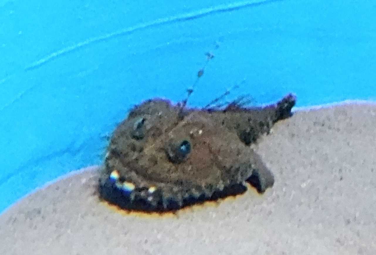 ミドリフサアンコウと、ピンク色のがノドグロヒメアンコウ。ミドリフサアンコウは英語でシートード(海のカエル)なのでそのまんま。ノドグロヒメアンコウがお互い興味ありげにめっちゃ向かい合っている所が可愛い。