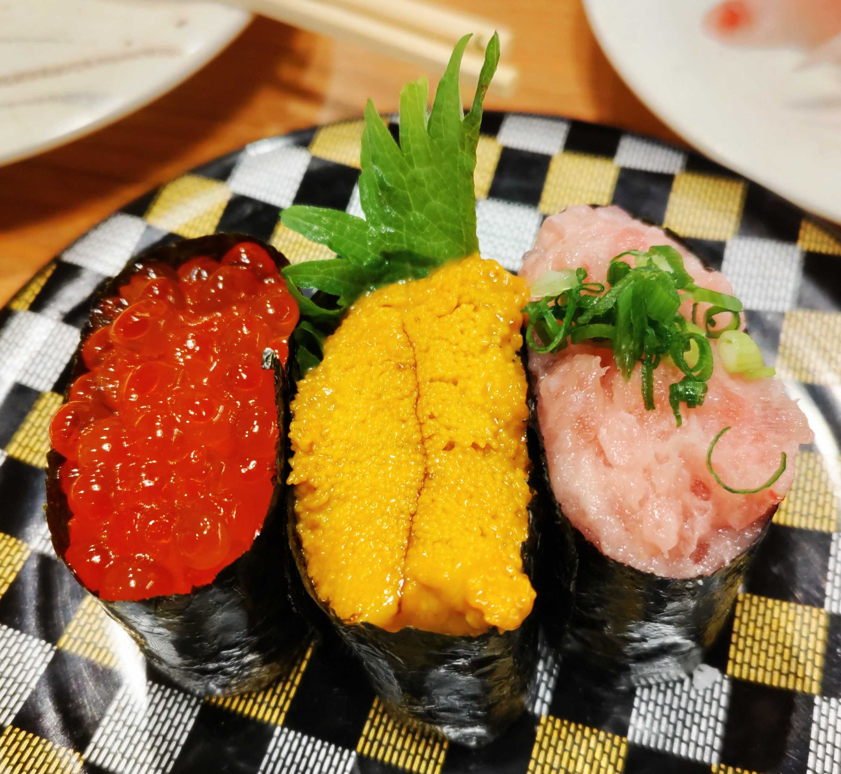 2022年ラストはオイシイ寿司の写真を。三貫盛はいろんな種類があり、写真1枚目の種類が違うシリーズは夫と分け合えるので特に助かった。(イクラをいただいた)寒ブリは脂がのってて、まろやかにおいしかった。