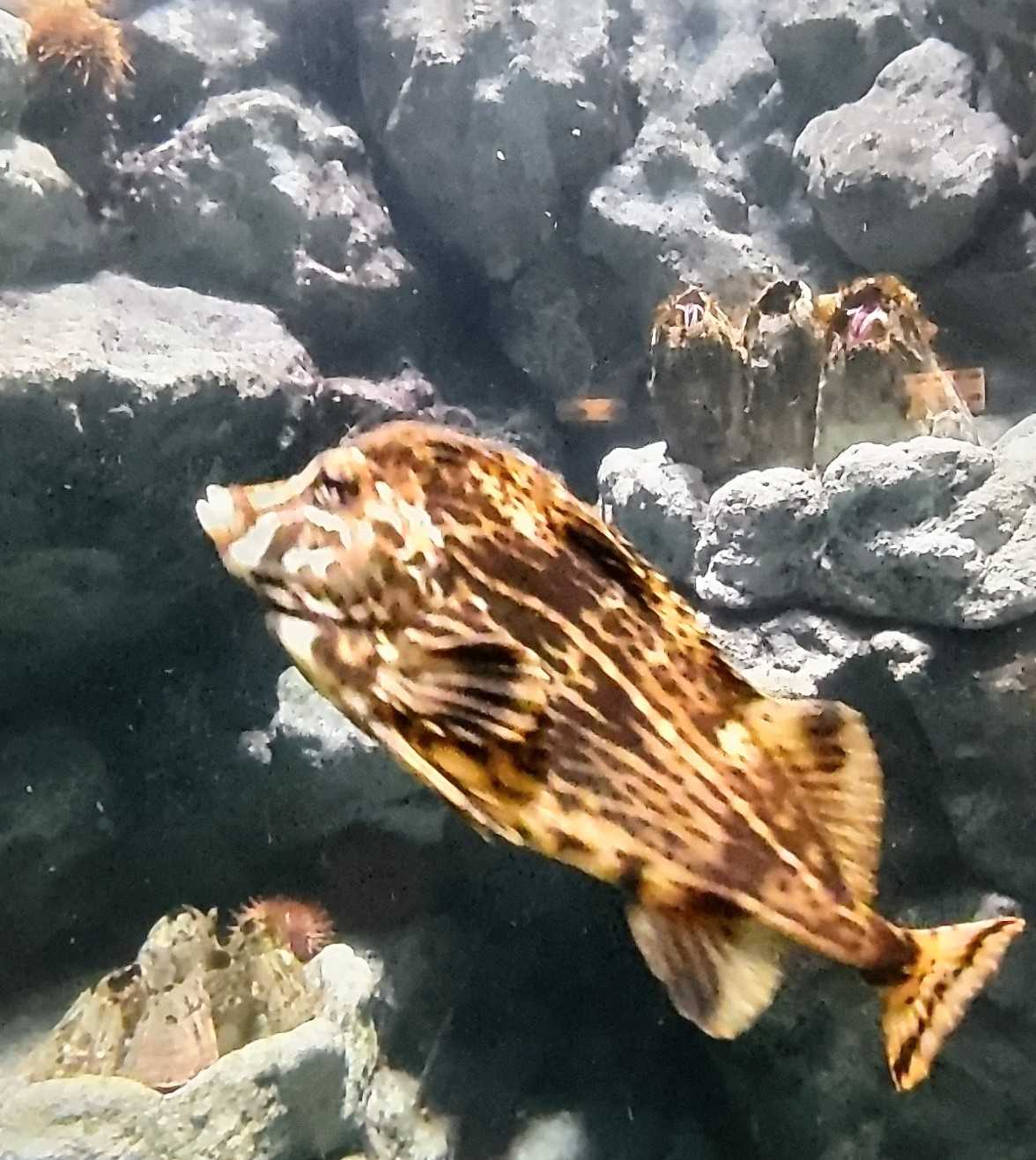 海藻に紛れたら探しづらそうな魚は、ぺス チャンチョ。後ろに写っているピコロコも含めて、メキシコ湾岸にいる魚やフジツボ達なのだとか。写真2枚目はミネフジツボという、日本の海域で生息しているフジツボで、実験的に一緒に生息させているようだ。名前がルパンに出て来る峰不二子を思い出した(笑)名付けた人はファンなのかな?