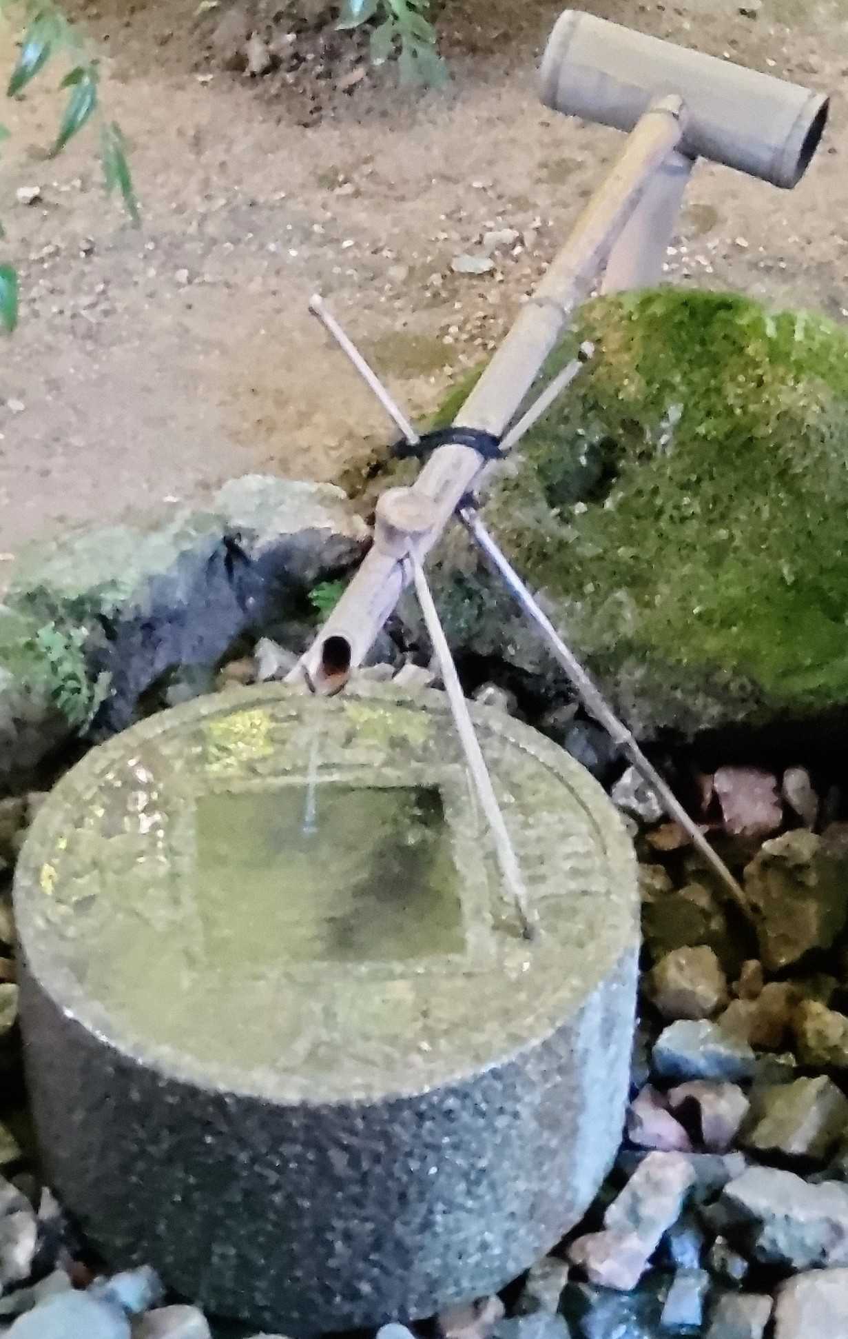 つくばいに書いてある文字は、中央の四角を漢字の口に見立てて読むと、「吾唯足るを知る」となる。何事も欲張りすぎるとキリがないぞと、昔から言われているのがわかる。亀甲石は、でかい亀がそのまま石になったかのような絶妙な大きさと色だった。