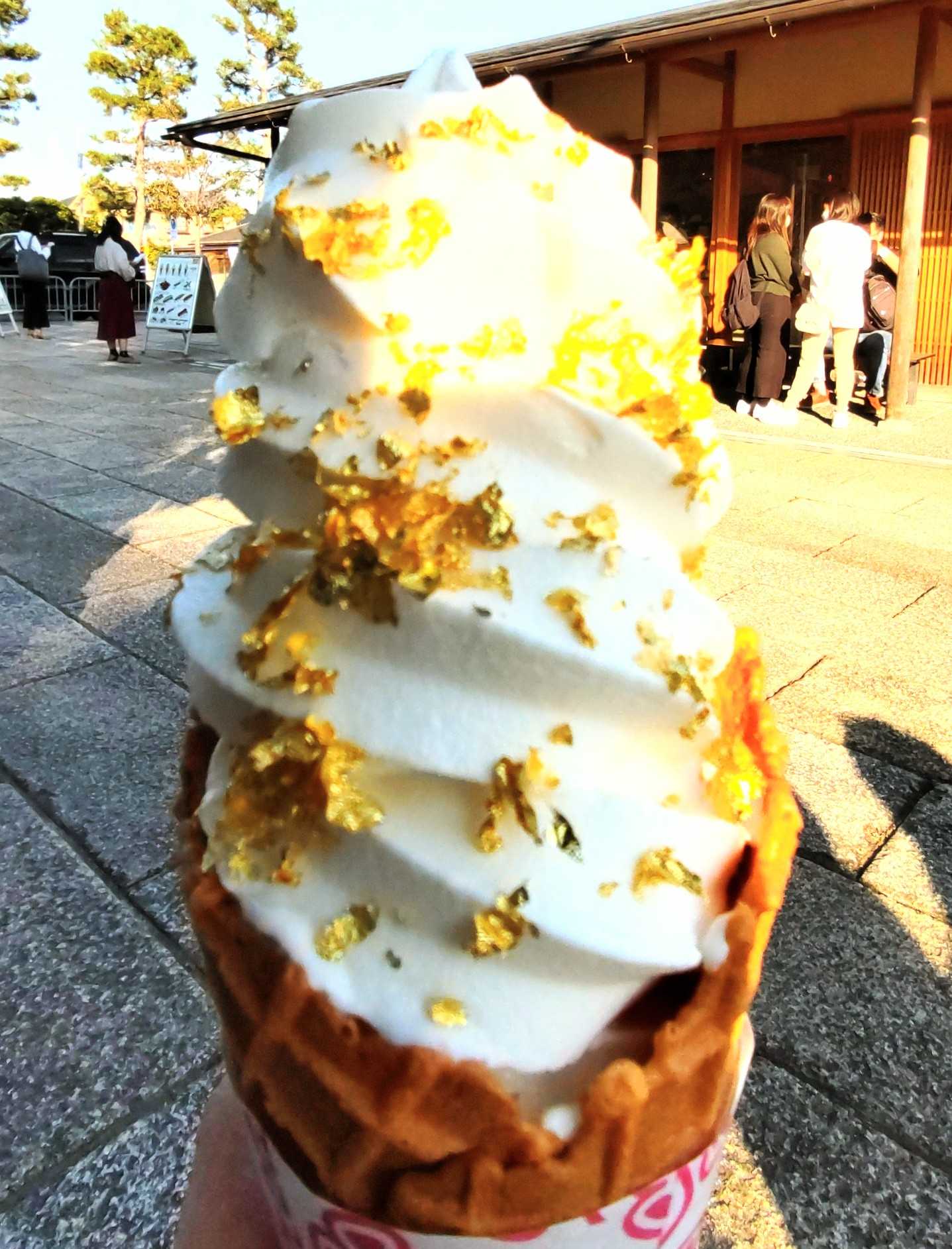 たくさん歩いて疲れた体に甘い物は最高だった。金箔パワーも何かに効いたような?