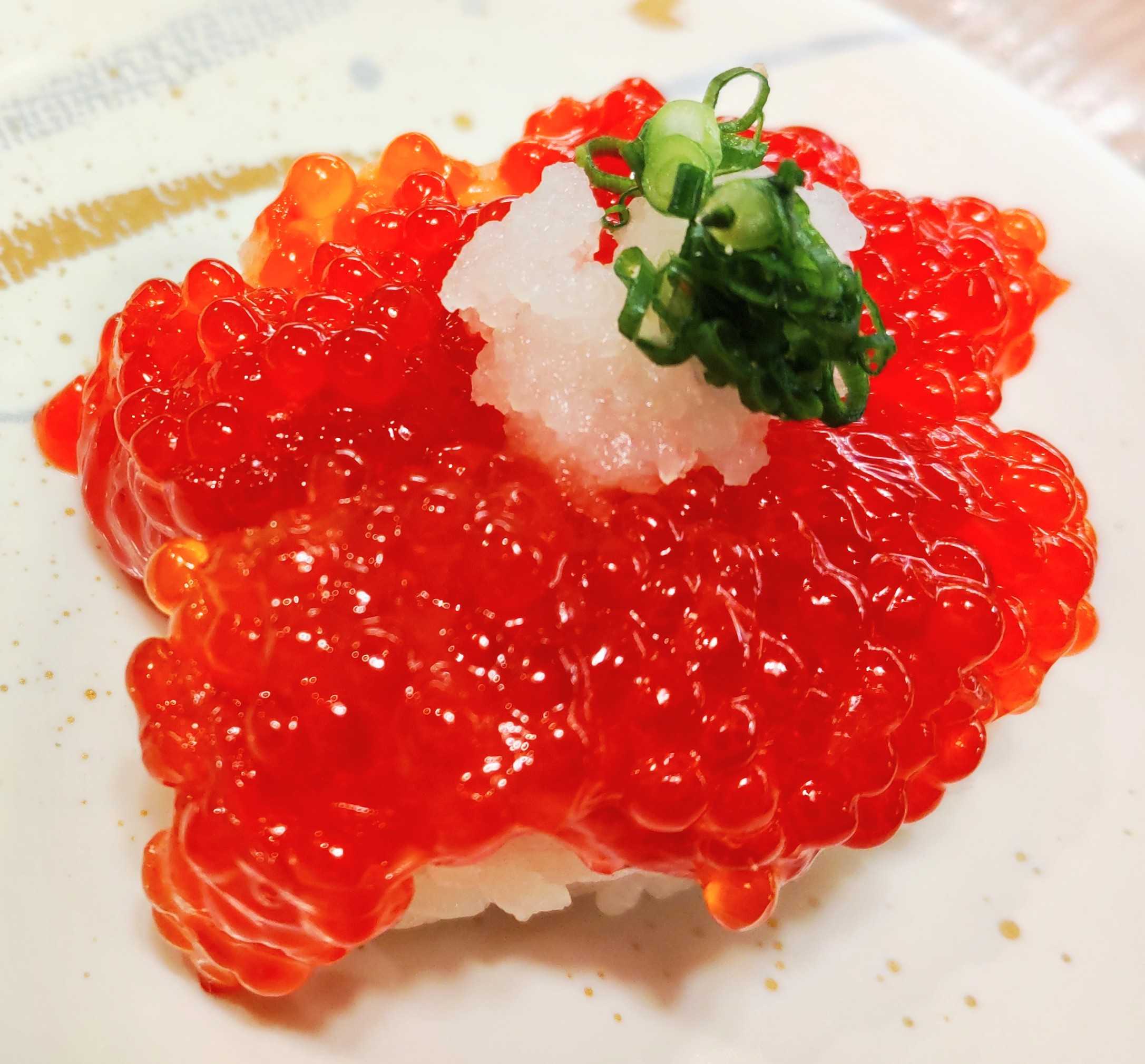 2022年ラストはおいしい寿司をガッポリ載せてみる。いくらではなく筋子があるのはなかなか珍しいと思いゲット。いくらとは違う凝縮したしょっぱさが、仕事後は最高に美味しく感じる。仕事の無い日だと、だいぶ塩辛く感じそうだ。エビは1貫なので、相当でっかいサイズの物なのだろう。