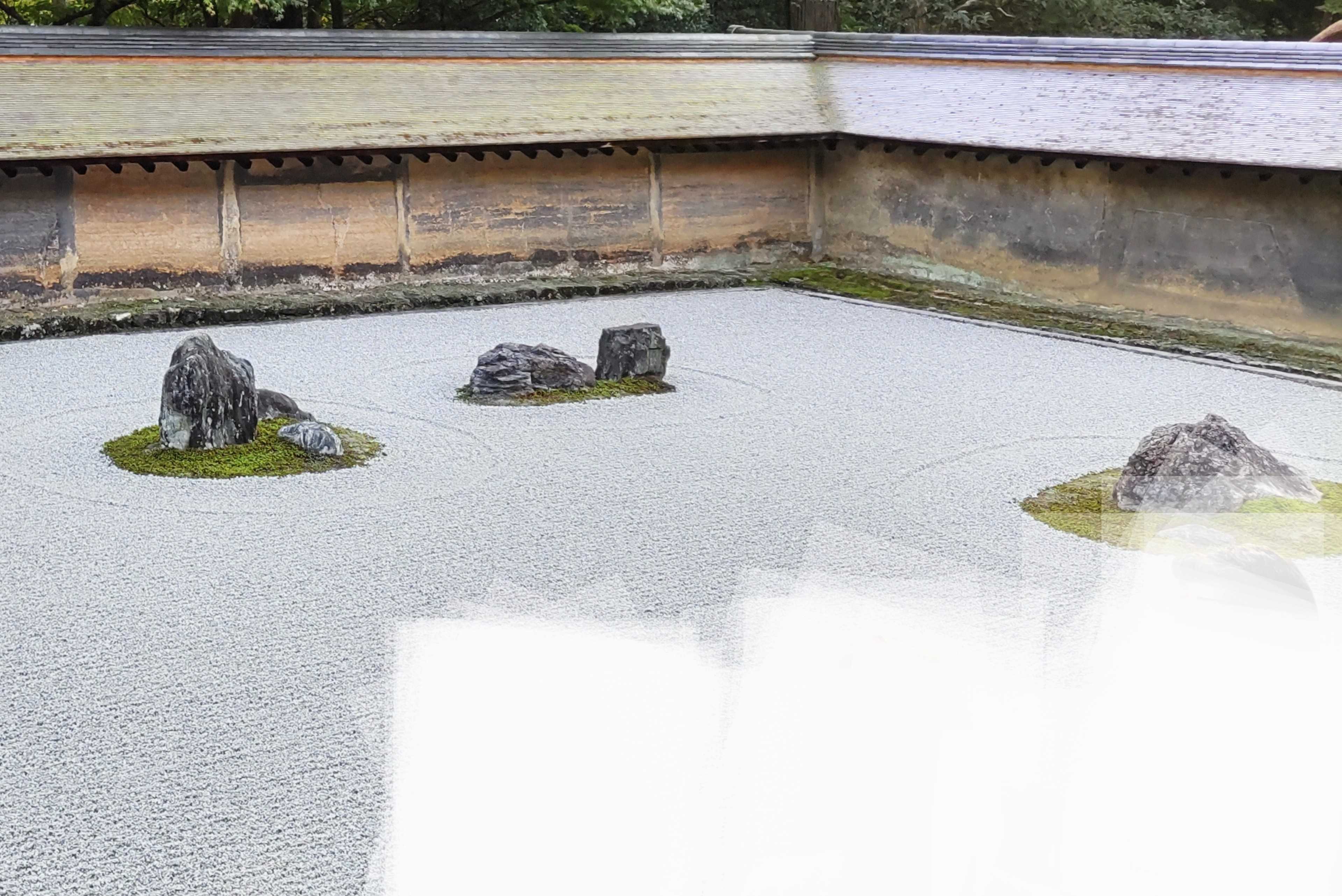 金閣寺の写真も昨日で終わり、徒歩20分頑張って歩き龍安寺へ。下り坂が多くて助かったけど、もし仁和寺から金閣寺へと逆のコースを辿ったら、坂道だらけでかなりキツかっただろう。夫の勘に感謝!龍安寺は、Eテレ2355の中でしょこたんが歌っていた歌で初めて存在を知り、行って見たくなった。池を見ただけで早くもワクワクした。