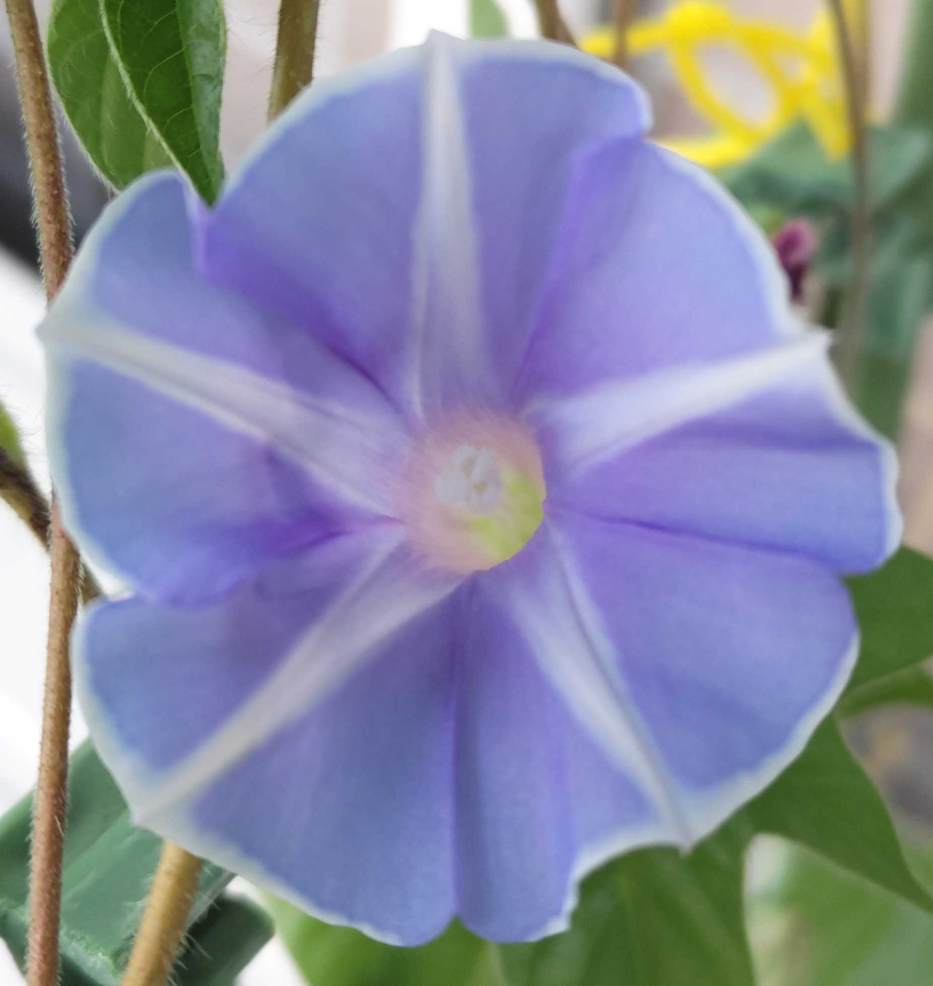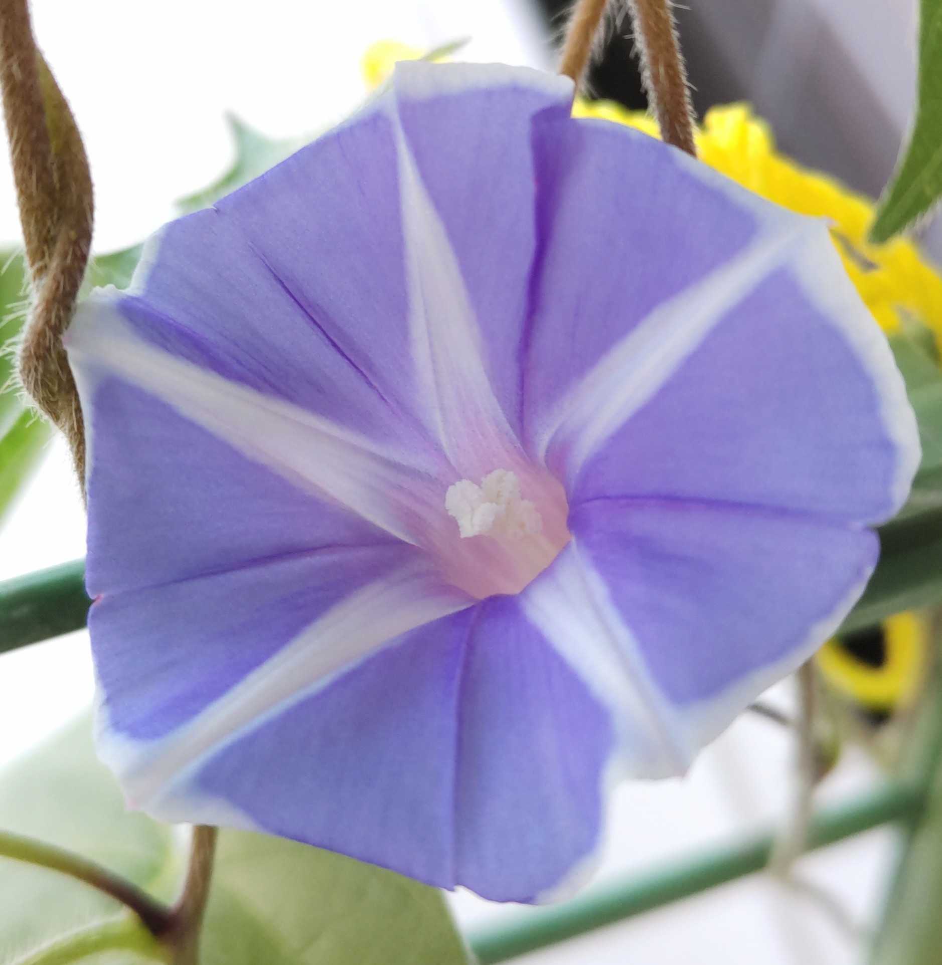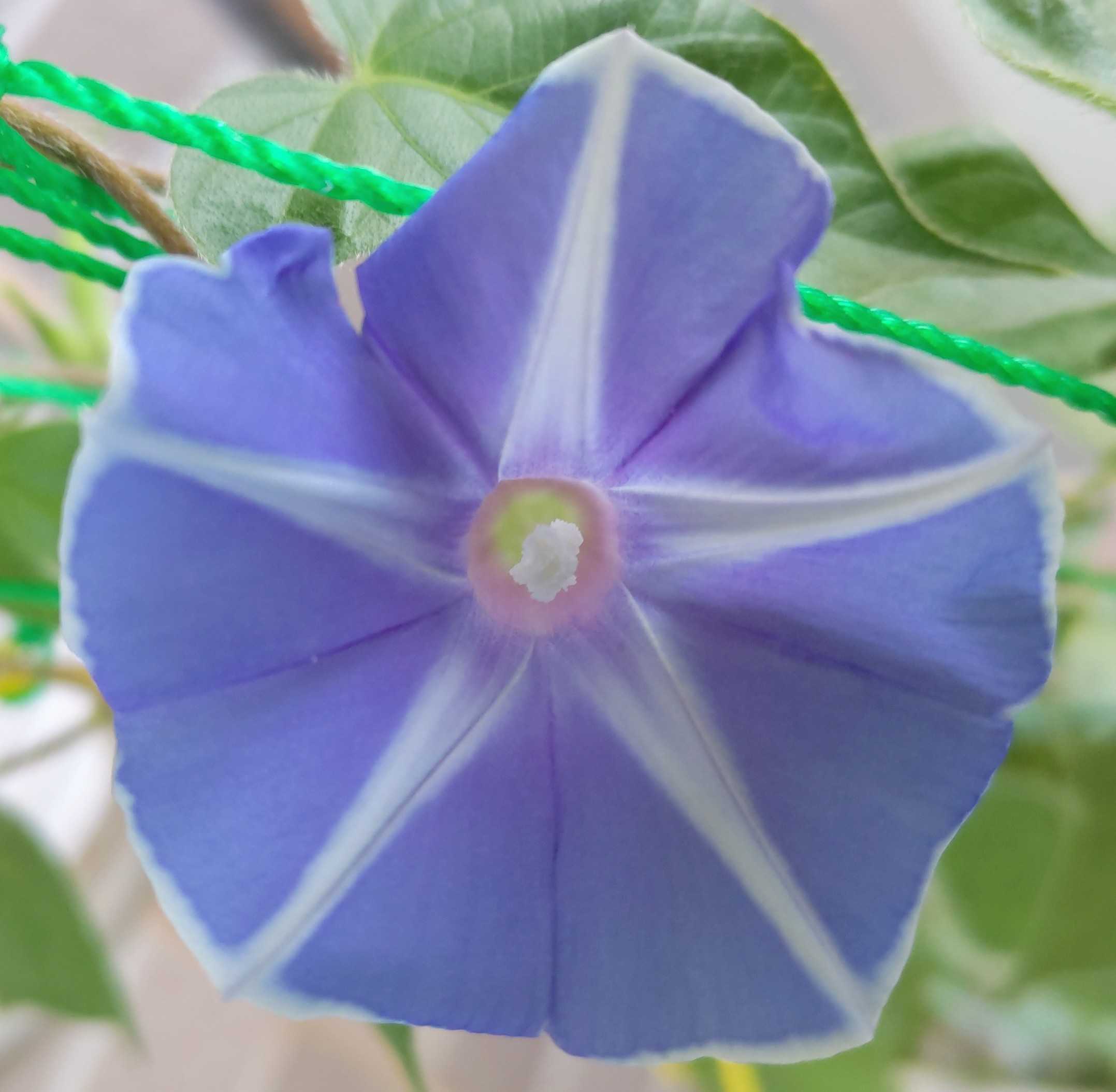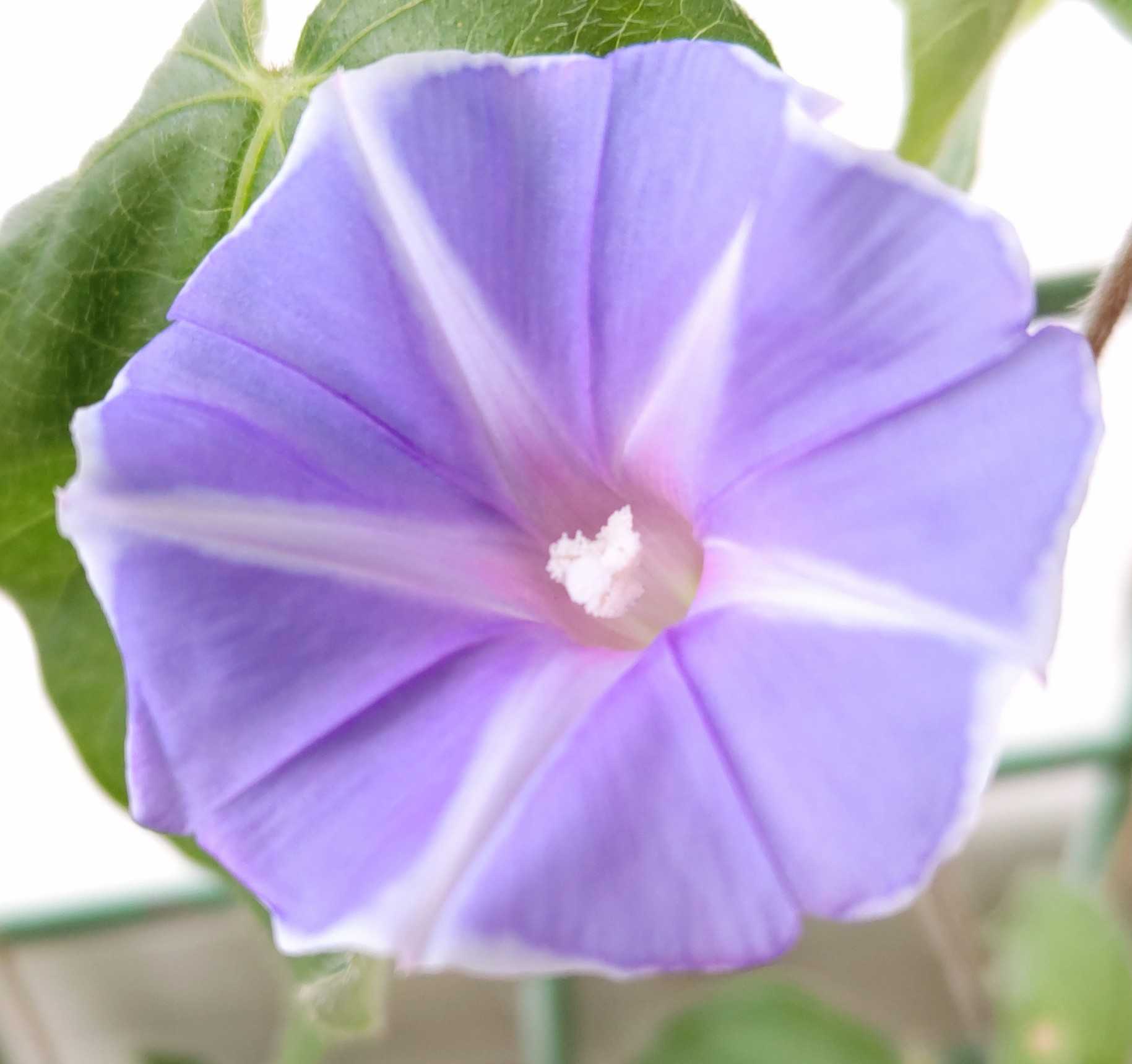 最初に咲いた青紫のアサガオと色は同じだけど、白い部分の面積が少なめのが開花した。これはこれで美しい。狂ったように暑いマッドネスサマーでも頑張っているアサガオを、心の底から尊敬してしまう。