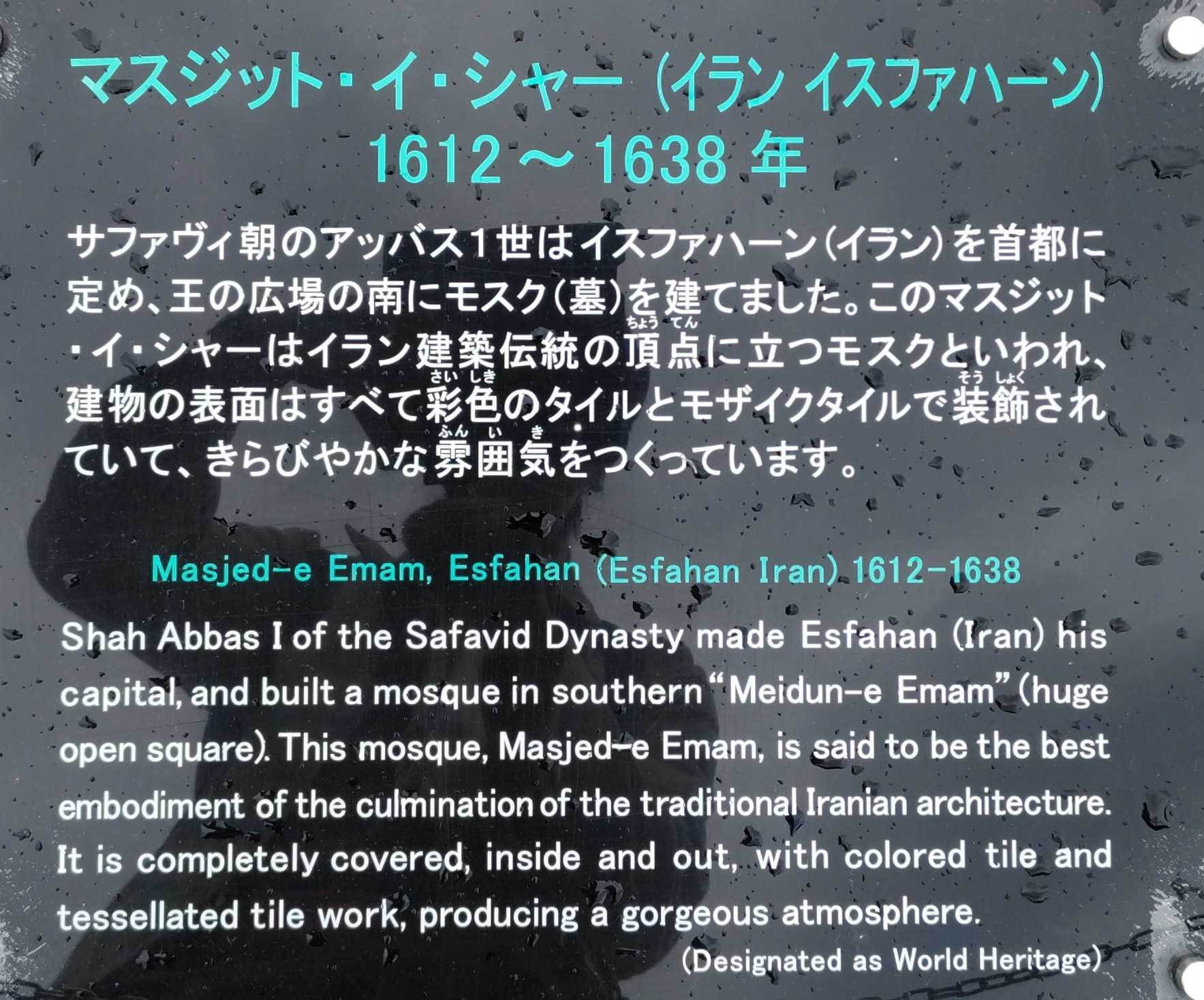 広場の青緑色の部分が、ラピスラズリかアマゾナイトの石をイメージする色で素敵だ。