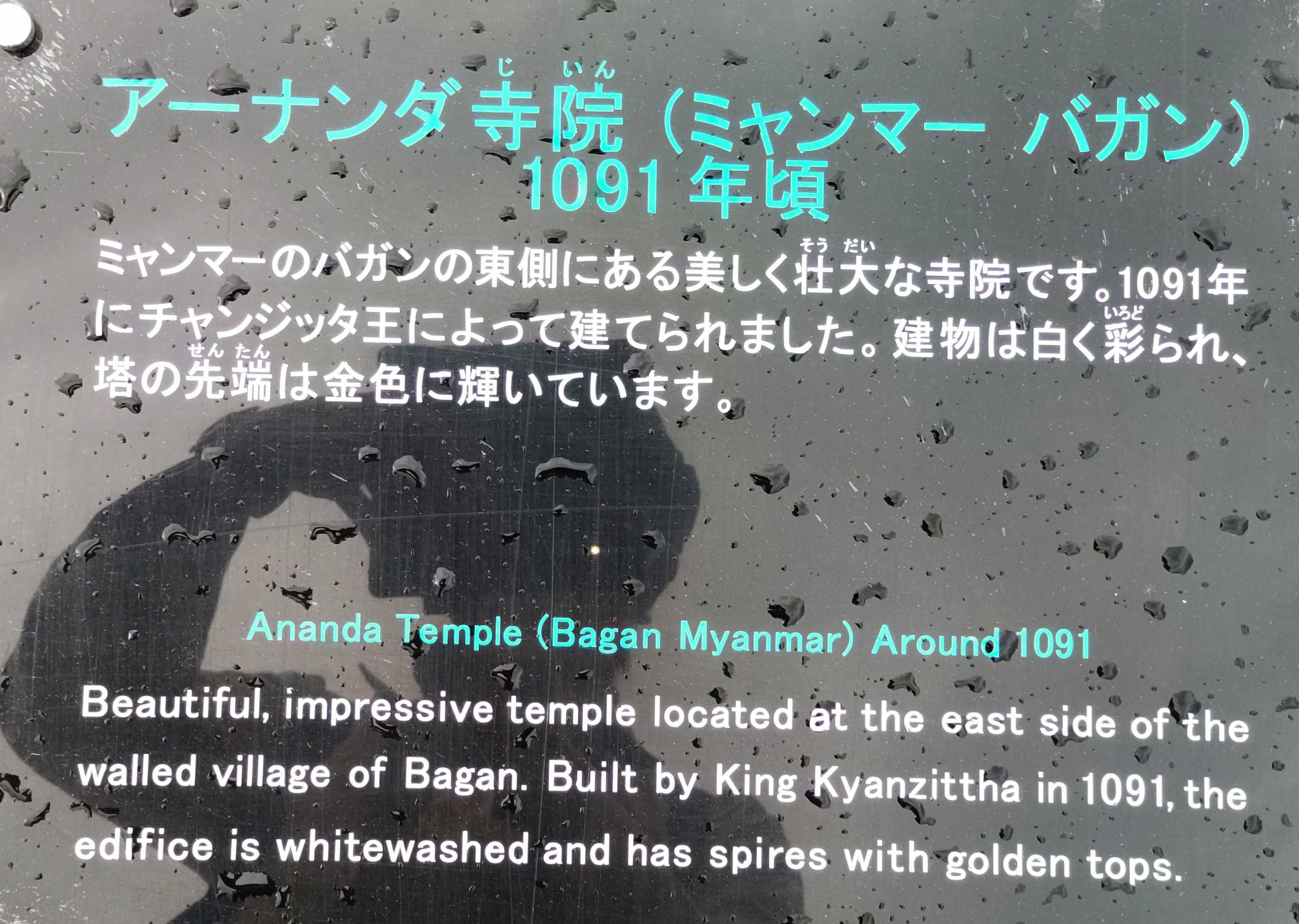 アーナンダー寺院の存在は初めて知ったが、「アーナンダー」自体はお寺で聞いた事がある。母方の宗教の葬式時にお坊さんがお経を読み終わった後の話で、お釈迦様が「アーナンダーよ、悲しむでない。私は死ぬのではない・・・(以下は忘れた)」と死ぬ前にアーナンダーに心の持ちようを語り掛ける話をしてくれていた事を思い出した。仏教の歴史はここから来ているんだろうなとわかった。