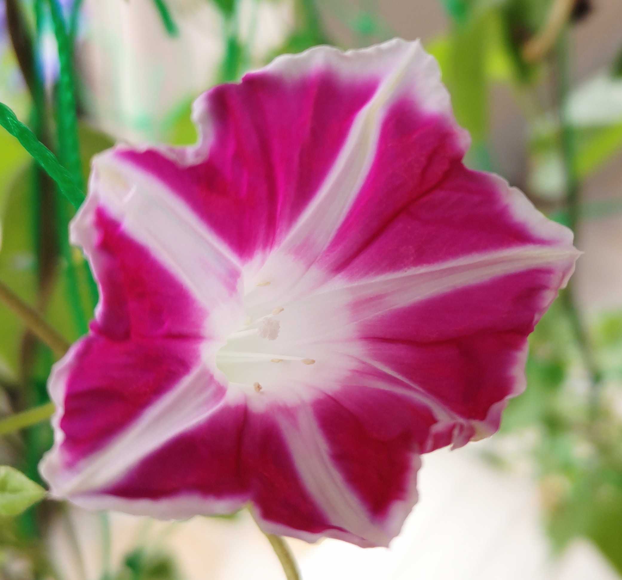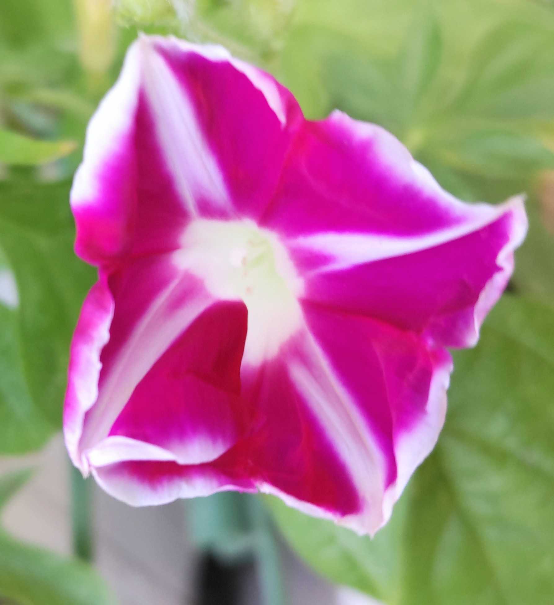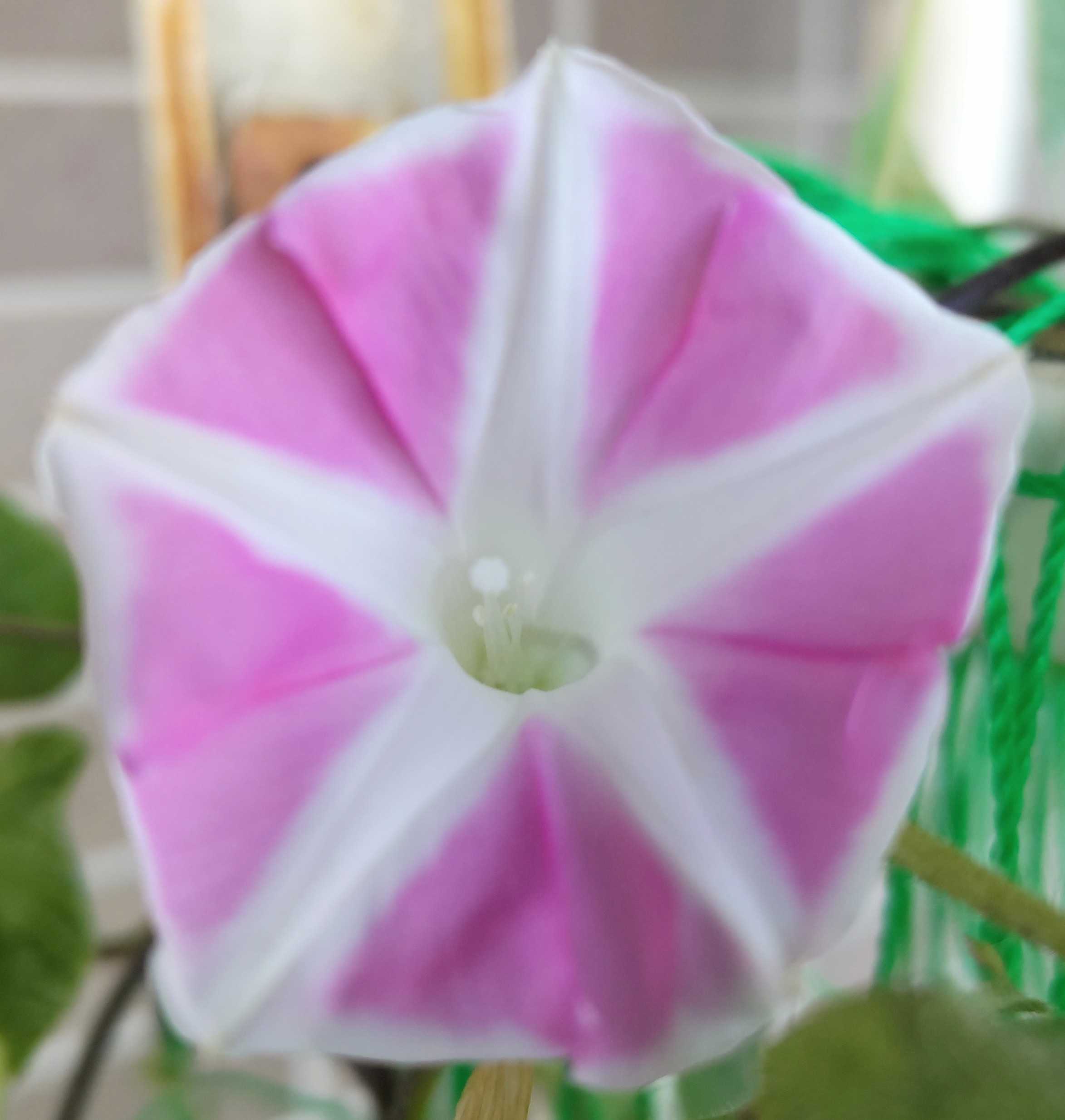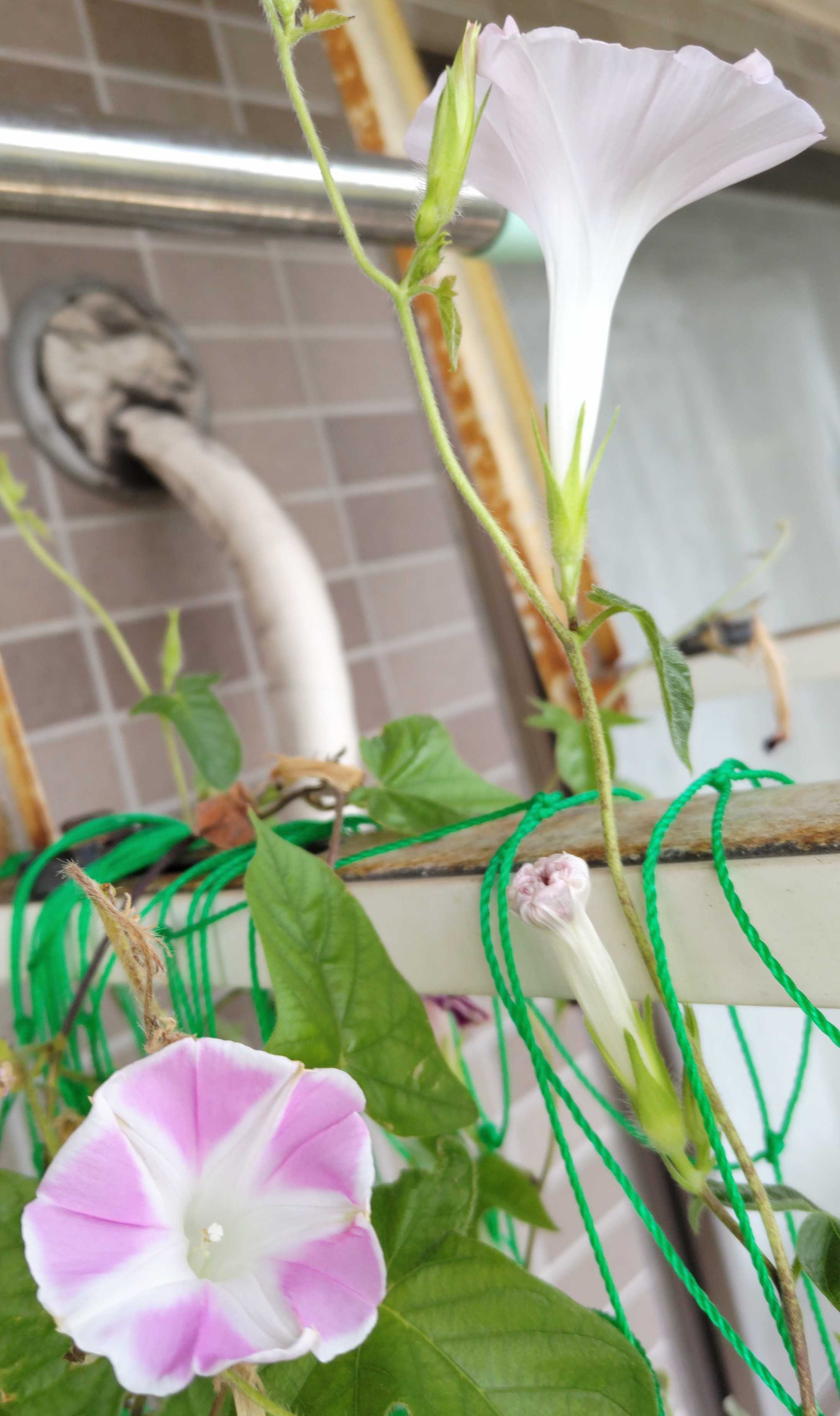夏も後半戦に来て、初めてピンク色のダイソーアサガオが開花した。赤ピンクでもパープルでも、薄ピンクでもない色が咲いたのが驚いたと同時に嬉しい。
