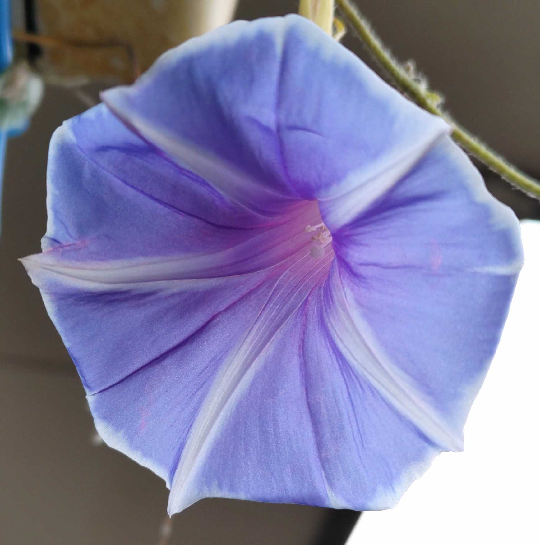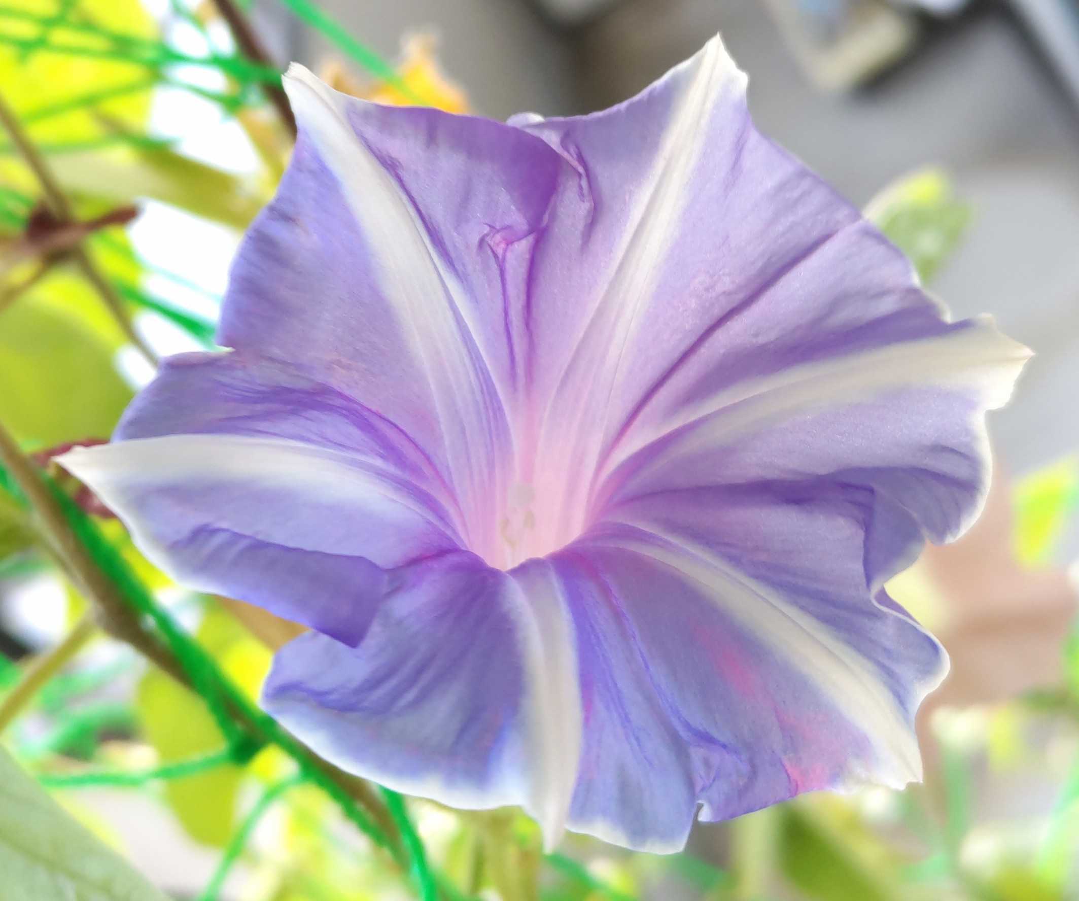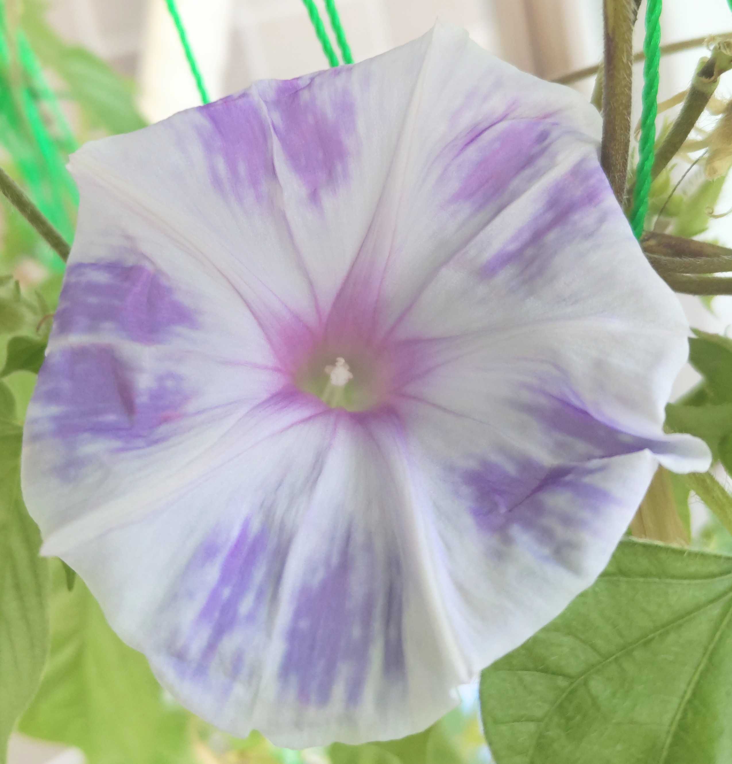 今朝は珍しく、ダイソーの薄ピンクアサガオは1輪だけ開花。いつもなら3~6輪くらい咲いているのに、凄く珍しい。(掲載してなくてゴメンナサイ)久しぶりに、かすり模様の紫アサガオが開花したのが嬉しい。
