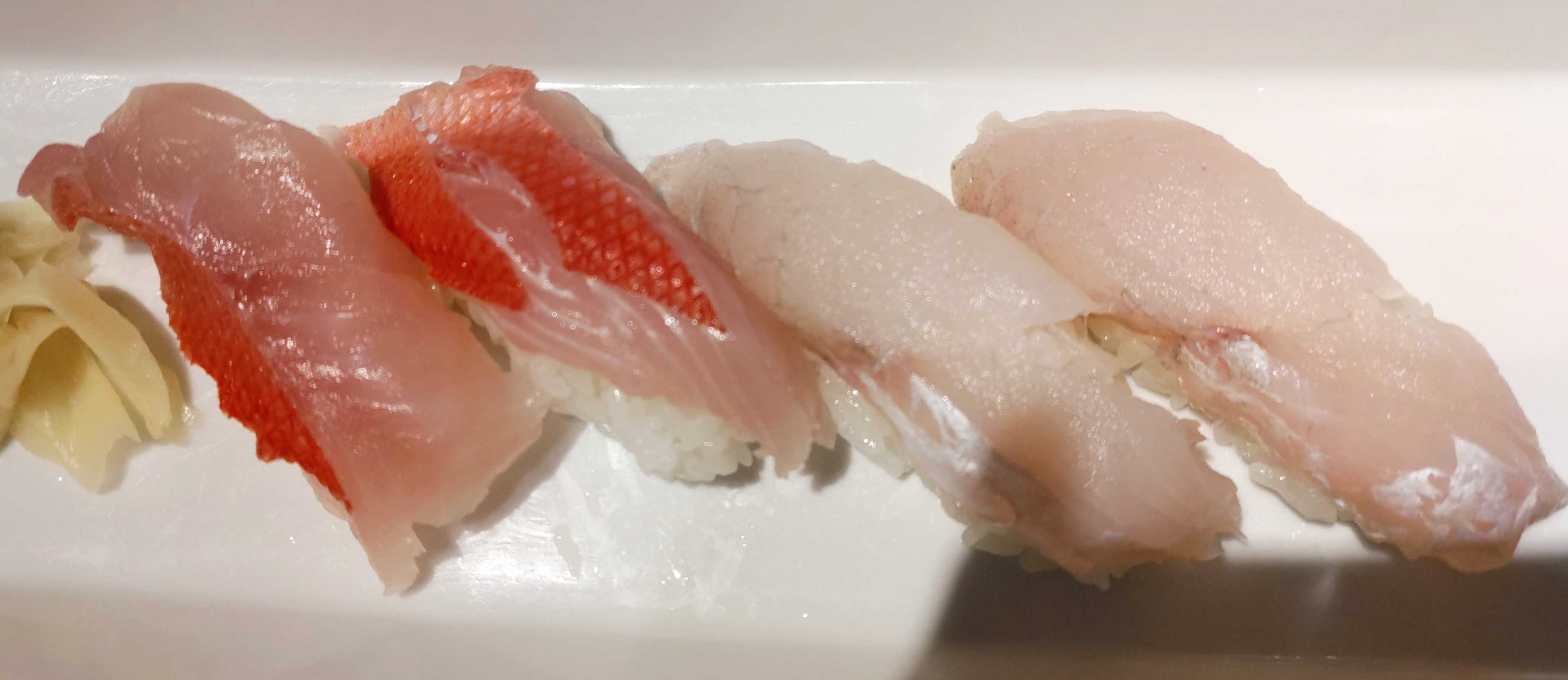 8月の外食ははな膳、去年の冬に行って以来だろうか。あの時はしょうもないストレスで思ったように食べられなかったけど、今日は大丈夫だった。食べ方が3種類あり、まずはノリとしょうゆを軽めにかけて海鮮丼のようにして食べ、残りは柚子胡椒と別添えの醤油をかけて味変し、最後のシメは白身魚と塩昆布、三つ葉を追加してからだし汁を投入して、海鮮茶漬けにして食べた。 ご飯の量もボリューミーな上に、3種類の食べ方でそれぞれ違う食感を楽しめるのも良かった。夫が「北海道展の弁当はボッタクリだ」と言ってたけど、何かわかる気がする。寿司はコチとキンメダイ。どちらも夏魚だからか?どちらもシンプルな味だけど美味しかった。