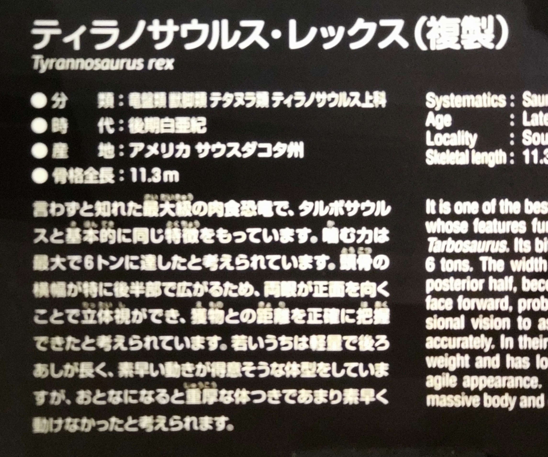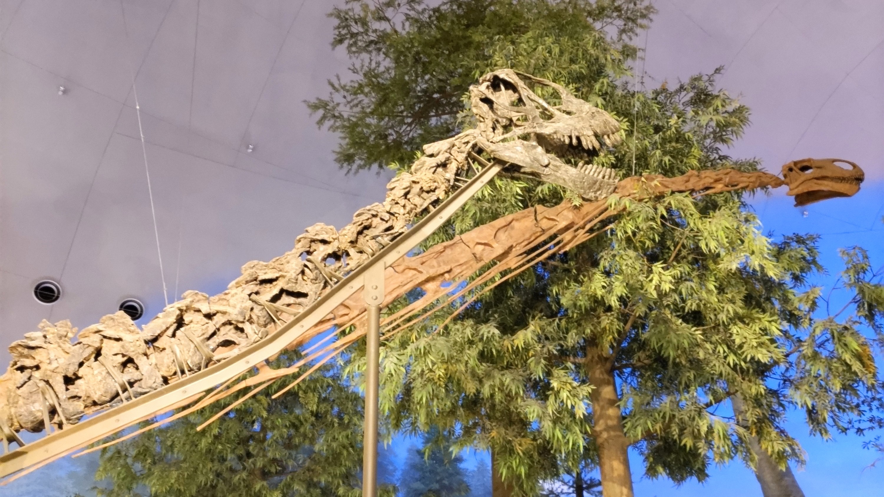 目の前で見たら本当に大きくて、ビルかタワーが歩いているかのような迫力だった。この恐竜もしっぽにコブがあるので、武器にして身を守っていたのだろう。恐竜も生き残りに必死だったのがわかる。