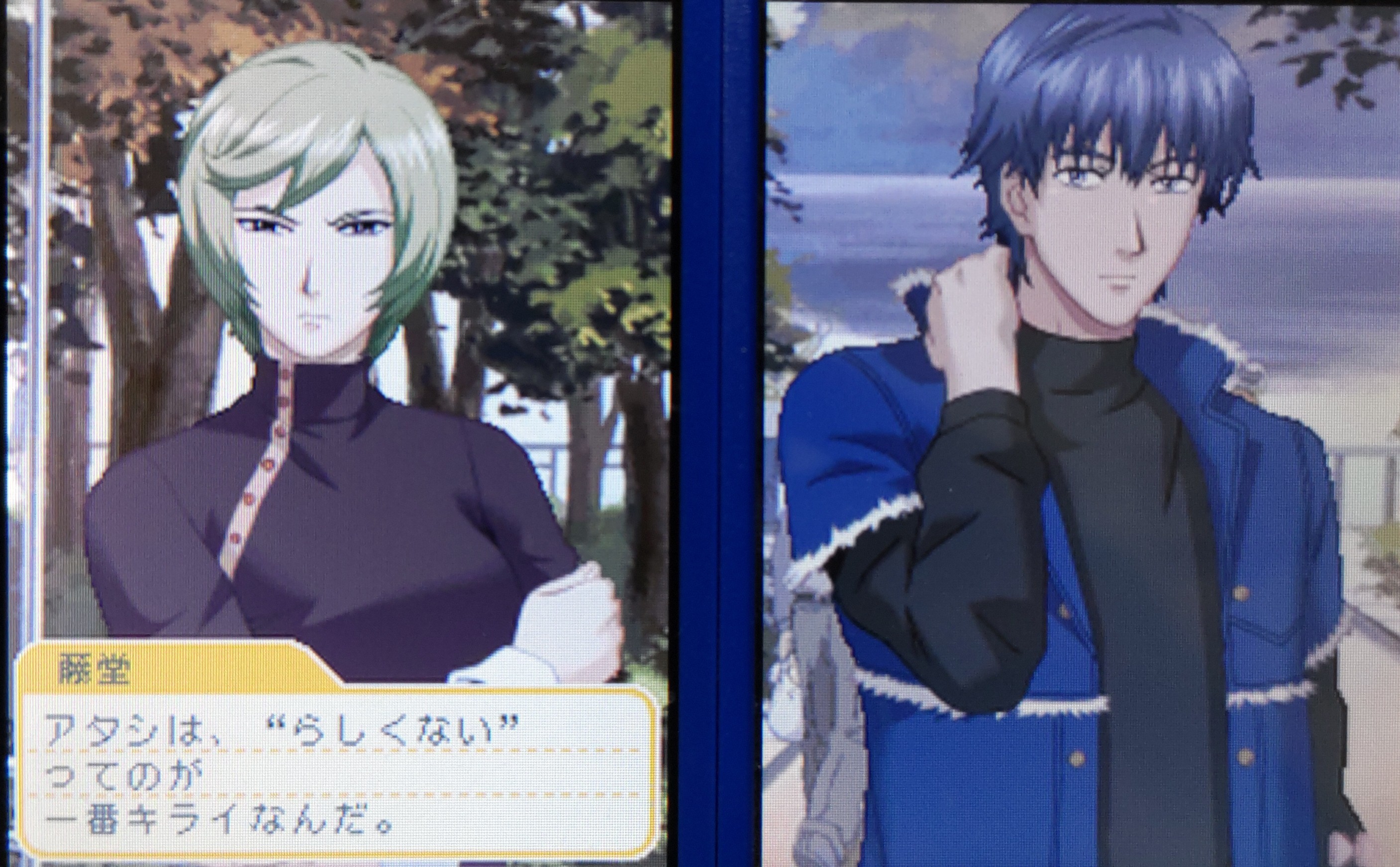 竜子姉を無事クリアしたので、心残さずシバカツの攻略へ。部屋を西本ちゃんの出るポップと迷ったけど、今回は水島さん登場のゴージャス部屋にした。アンケートも運動系が優位になるよう「クールで頼れる人」と答えて志波君と見事に事故チューした。 もちろん野球部に入りひたすら洗濯を繰り返し、行楽運が悪い時は水島さんと遊ぶようにした。こんな調子なので夏の期末で早速赤点まっしぐらするか?と思ったが、夏ではなく冬の方だった(笑)でも、若王子先生の赤点アルバムが取れたのでひとまず良しとしよう。夏服の方は西本ちゃんエンド狙いの時にでもやってみようかと。 シバカツのスチル写真は、友好までは過去の攻略時に爆弾防止の為だけデートで取れているけど、ひとまず友好度を上げる為だけの為に秋の動物園はゲットした。でも、平日の学校写真の方をなぜか取れていなかったので、冬服時に勉強コマンドもちゃんと入れて逃さずスチルを取っておいた。 いつも通り月一のデートを逃さず誘いまくり、アクティビティ系をメインにした。クラブマスターを目指すためにバイトは2年まで我慢し、フリマでゲットした服をヘビロテし、冬のコートが正月過ぎるまで買えず、仕方なく標準服でやり過ごした。余談になるが、2だといつも買い忘れて終わるつば広帽子がフリマに出ていたので初ゲットした。スポーティな服メインだと、いま一つ合わないのが残念でならないが(泣) デートを続けたおかげで2年目初夏に好きスイッチが入ったようで、やっと野球部に入部するイベントが発生した。デート写真と違って他のクラブ時では取れないし、やっと過去を振り切った感が嬉しかった。 修学旅行で枕投げを発生させようと9月に芸術コマンドを入れまくったが、数値が60超えてもなぜかクリスはんが登場しないまま修学旅行の日が来てしまったので、泣く泣く1年目3月からやり直す羽目に(泣)