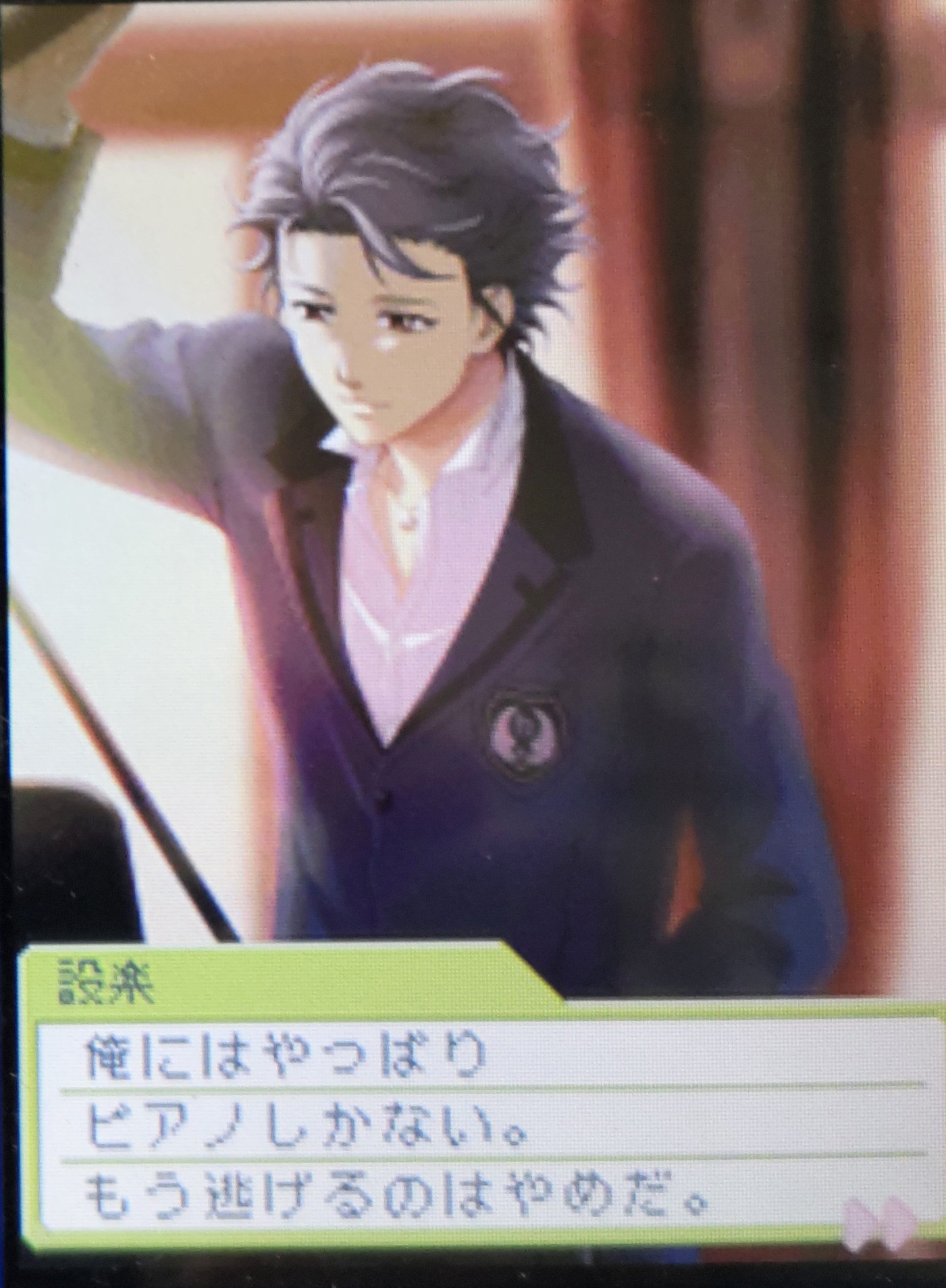 なかなか思ったように遊ぶ時間が取れず、攻略が進まないこの頃。おまけにアルバムにADV回収まであるので、全コンプリートは1回で出来そうにないけど面白くて止められそうにない。 設楽の友好度がなかなか上がらなくてヤキモキする日々が続いていたが、2年目秋のピアノに覚悟を決めるイベントを過ぎた辺りから大きく好感度が上がったようで、秋の学園演劇後すぐに自宅デートのお誘いが来た。 やっと好きスイッチが入った嬉しさでそのままゲームを進めていたのだが、冬の商店街でたこ焼きを食べるイベントは好き状態では発生しない(友好状態限定)ことが分かり、泣く泣くリセットした(泣) やっとの事で進めたが、12月は恋愛運がずっと悪くて誘っても撃沈してばかりで、クリスマス後にしようと腹を括ったら、今度はクリスマスで好きスイッチが入ったようでまたお誘いが来るようになってしまった(泣)・・・まさかたこ焼きの為だけに2度もやり直す羽目になるとは思わなかった。 秋の学園祭は演劇ではなく吹奏楽に勤しみ、秋のデートは10月は見送って11月の紅葉デートのみにし、23日の恋愛運が良いうちに設楽に電話してOKをもらった。アルバムの為だけにここまで四苦八苦する羽目になるとは思いもしなかった。取り損なったピアノ連弾イベントの方は、次回は失敗しないようバイト無しで2年目秋まで我慢しよう。 そもそも設楽が先輩で(紺野もだけど)一緒に学校で過ごせるのが2年目までという時間制限があると言う設定上、中級~上級者向けの相手なのかも知れない。しかもあの根性曲がり(ファンの方ゴメンナサイ)だから一筋縄ではいかないのかもしれない。やっぱり素直に不二山君辺りから始めれば良かったかなぁ?と思うが、とりあえず頑張ってみよう。設楽の好きスイッチはもうすぐそこまで来ているので・・・。
