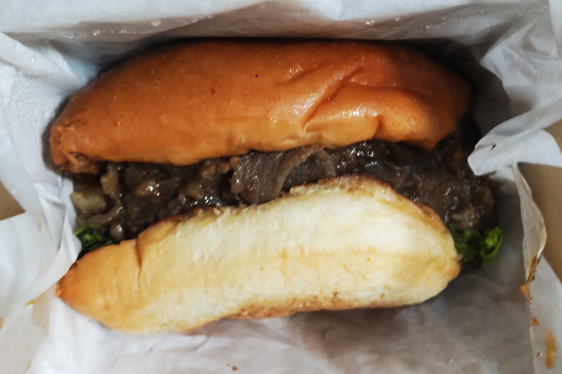 モの期間限定バーガー。箱入りで高級感が溢れているが、食べてみたら肉のたれの味付けが甘くて、まるですき焼きのようだった。私が肉に求めているのは甘味じゃない、塩と旨味なんだ!って商品開発者に言いたくなる。