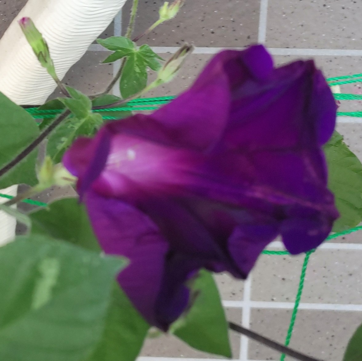 変わった色や模様の花をここ数日見かけていたが、この日のは暁の海とダイソーアサガオのハーフっぽい?鮮やかな赤紫の花が2輪も咲いた。