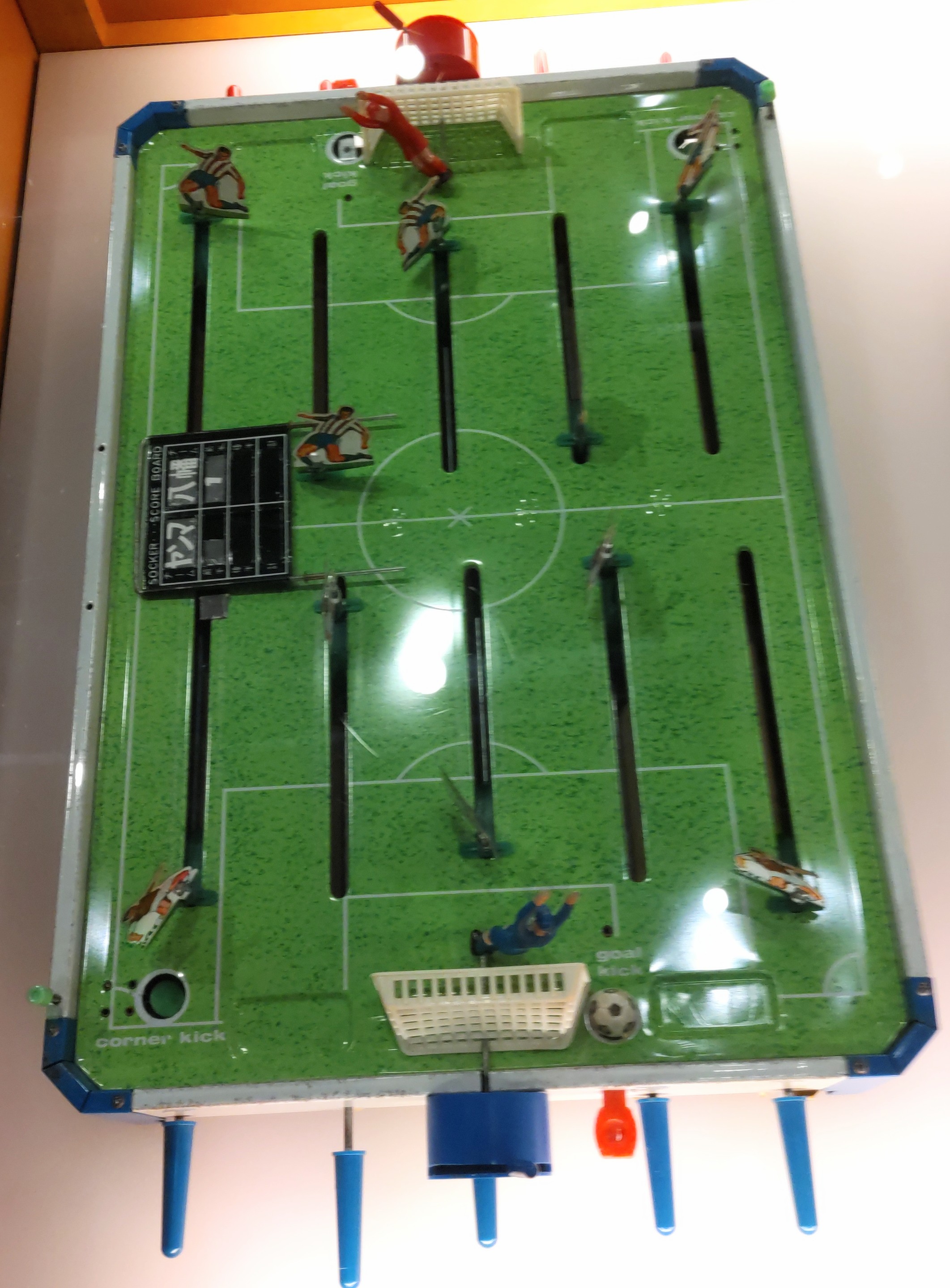 サッカーゲームは昔従姉の家にあった記憶がある。遊んだわけじゃないのになぜかその事だけ覚えているのは、遊んでみたかったからだろうか?野球盤は、今はもうスコアが電子表示になってるとか。時代と共におもちゃもハイテク化しているようだ。 初代はスコアをホワイトマーカーで自分で書く方式のようだけど、我が家にあったのは得点表の紙小物を自分で差し込む方式で、消える魔球用の落とし穴がホームの手前にあった。父が良く遊んでくれたので、よく覚えている。