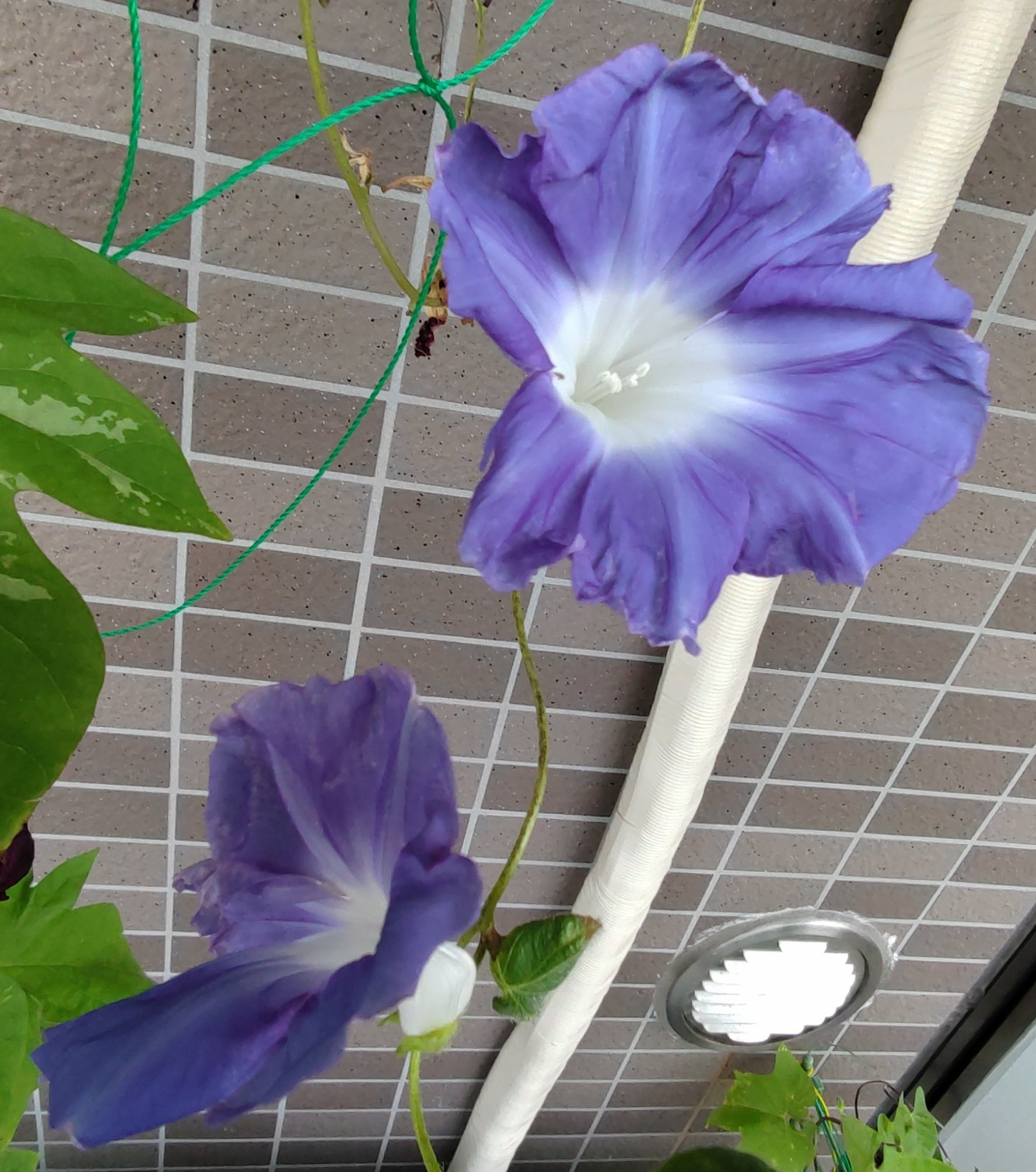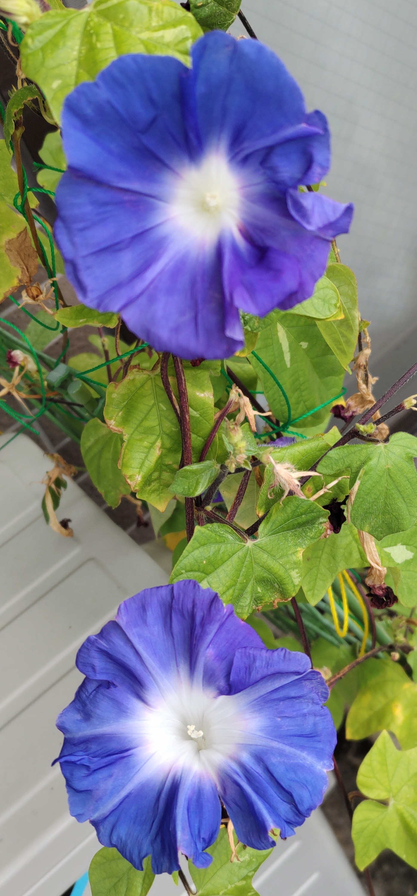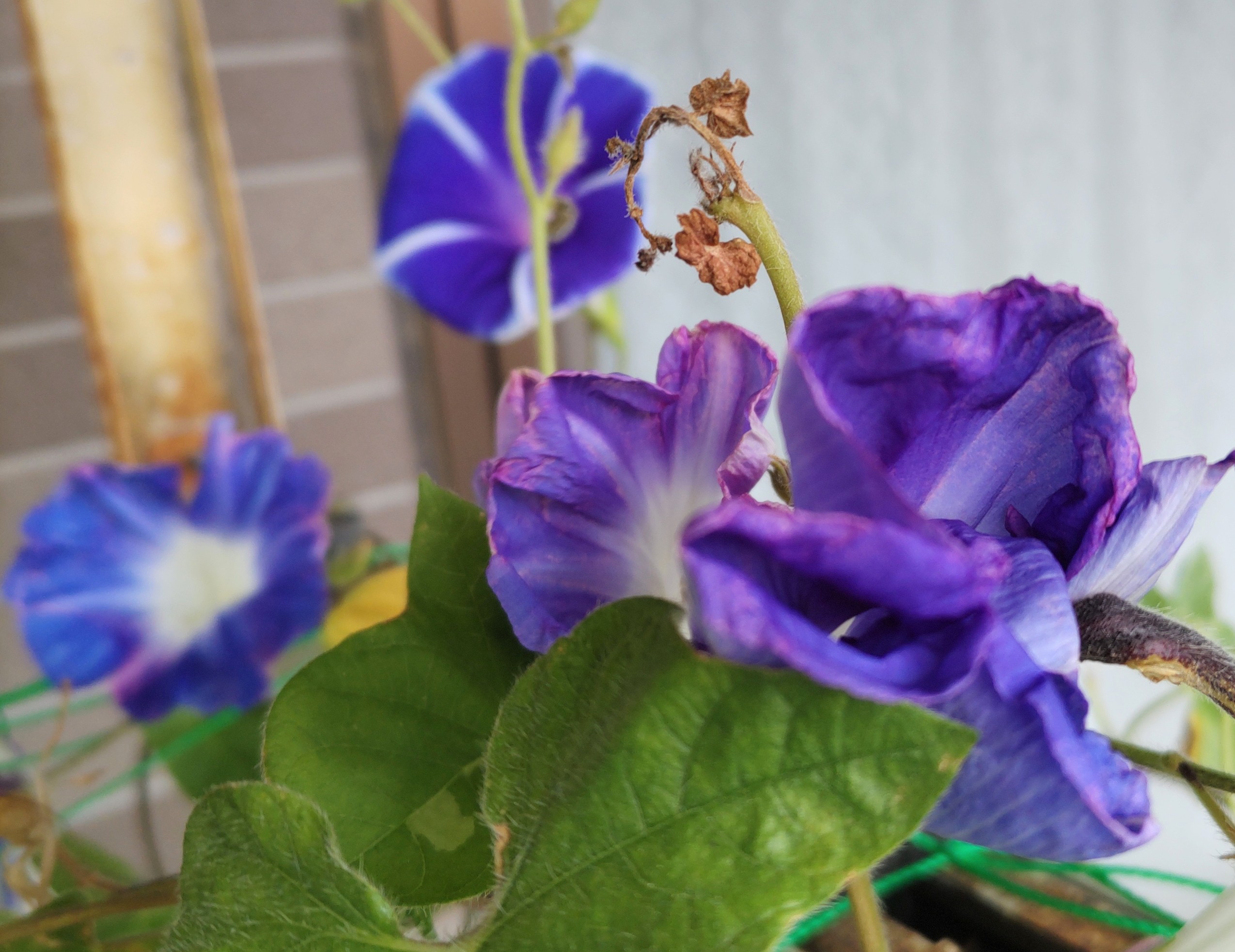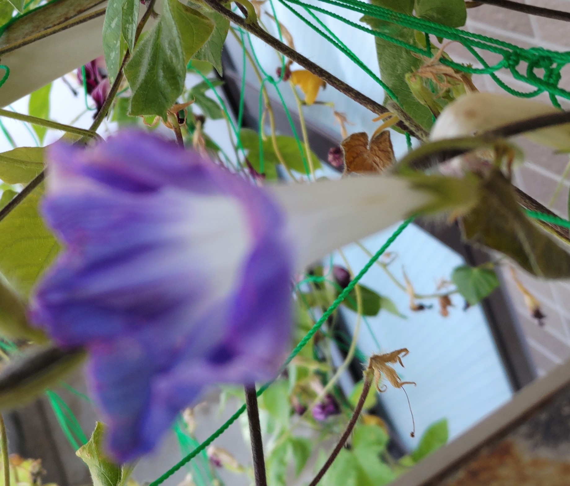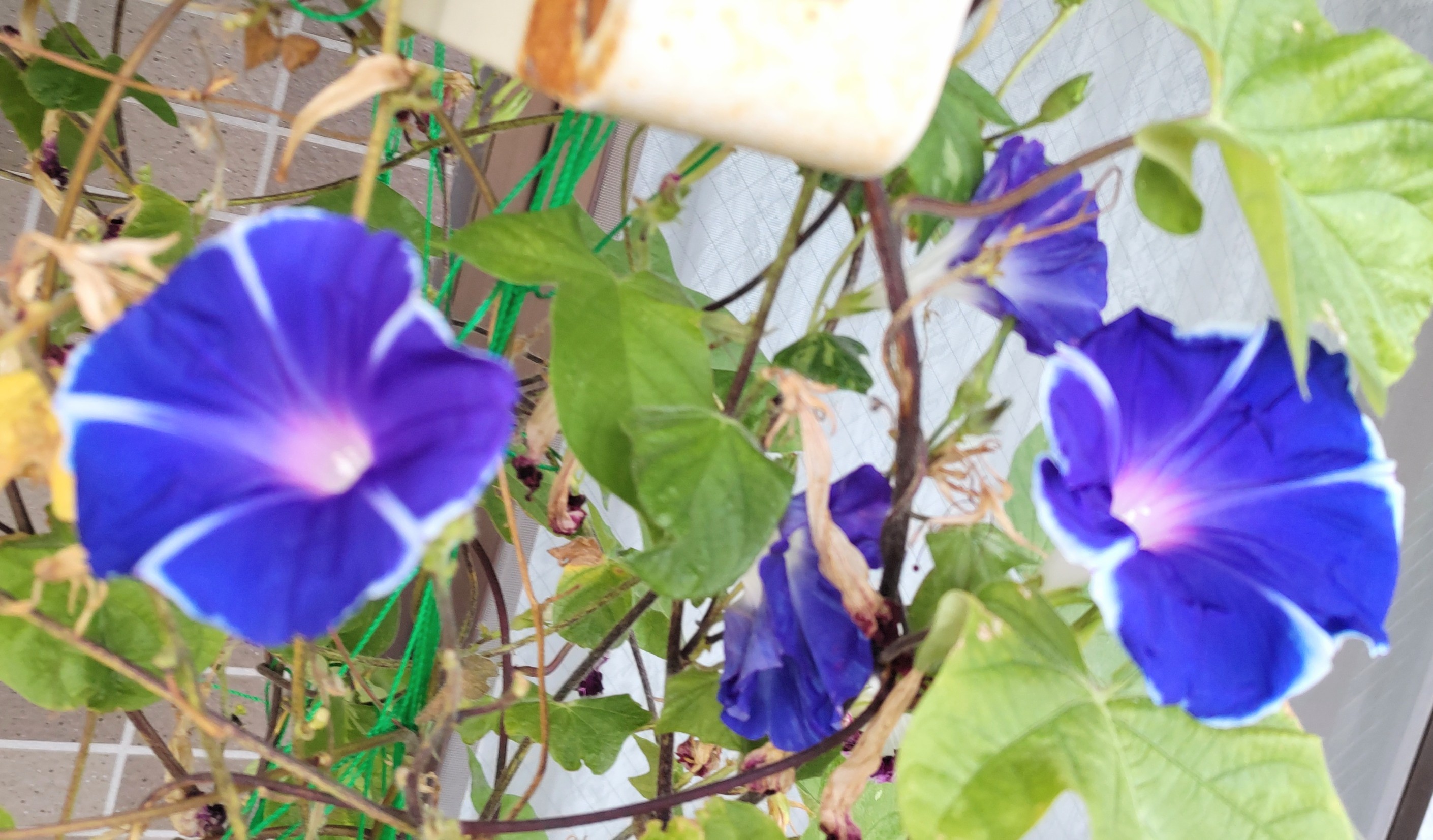 猛暑が酷くてさすがのアサガオも開花しなくなるのでは?と思ったけど、日除けのおかげか?頑張って今日も開花を続けている。