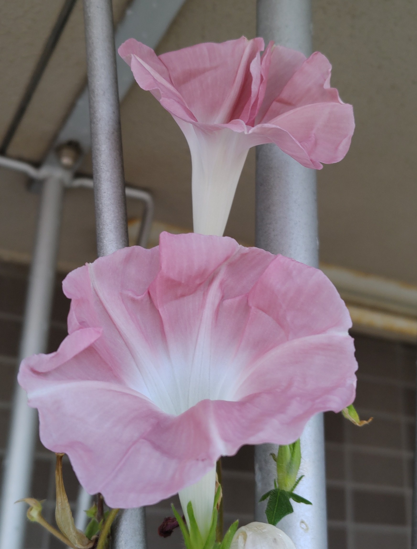 開花数が減って来たので、ピンクのアサガオも載せてみる。やっぱり猛暑のダメージと夏の終わり(?)をどこかに感じる。