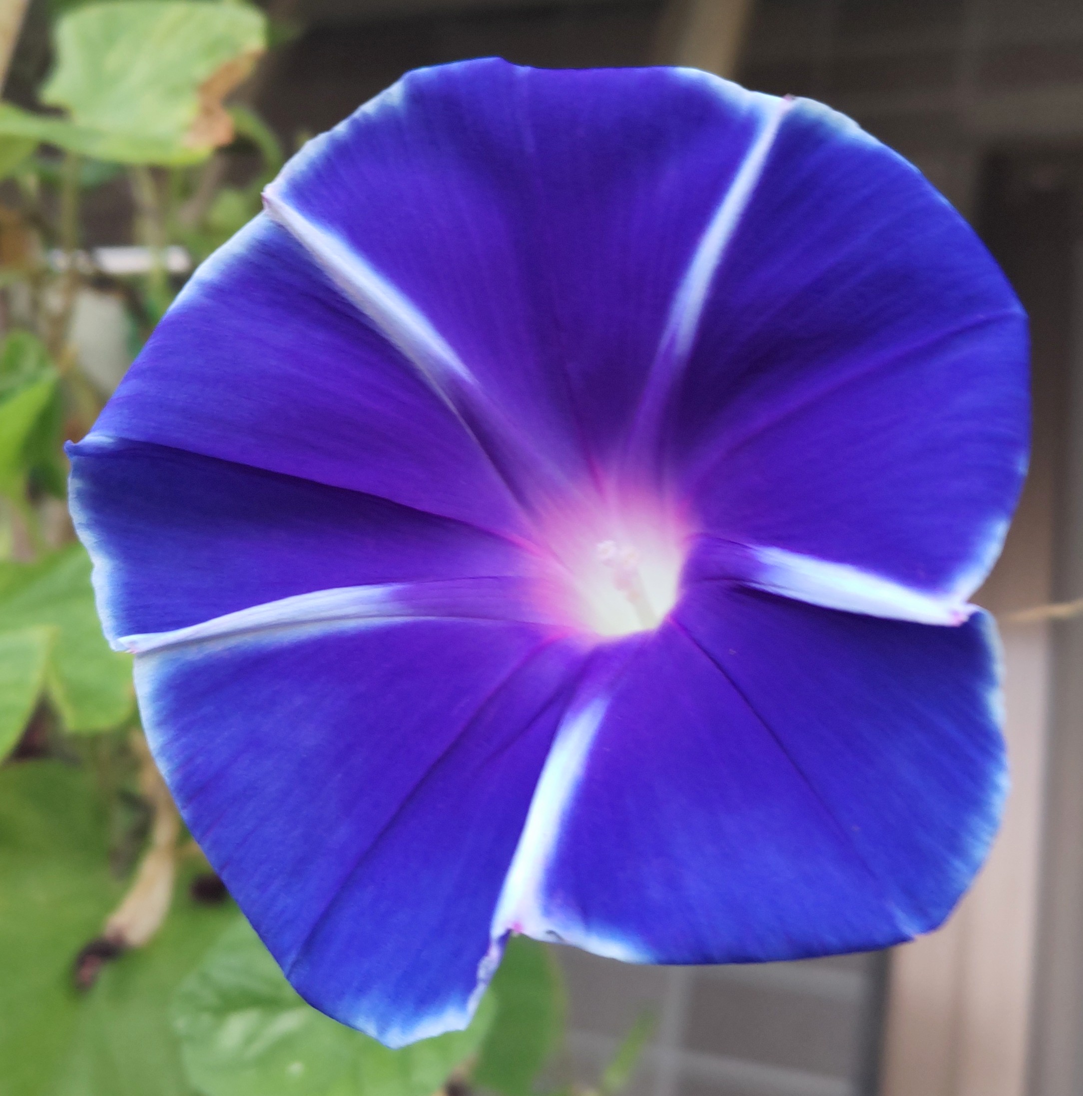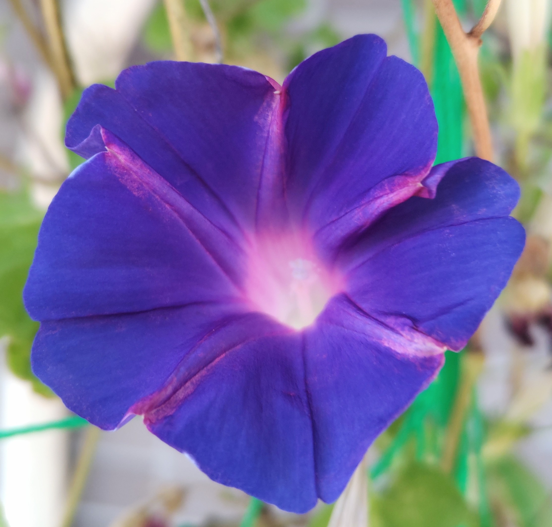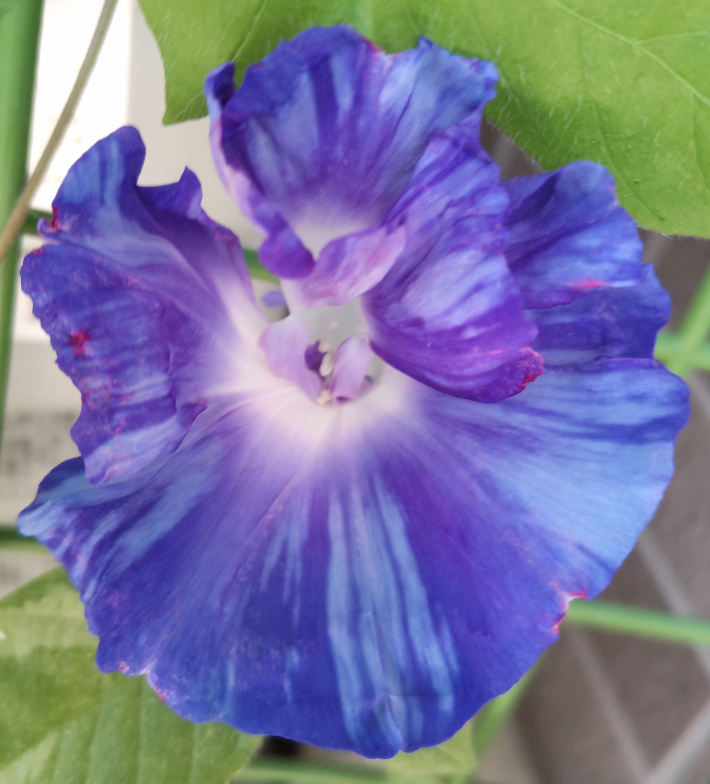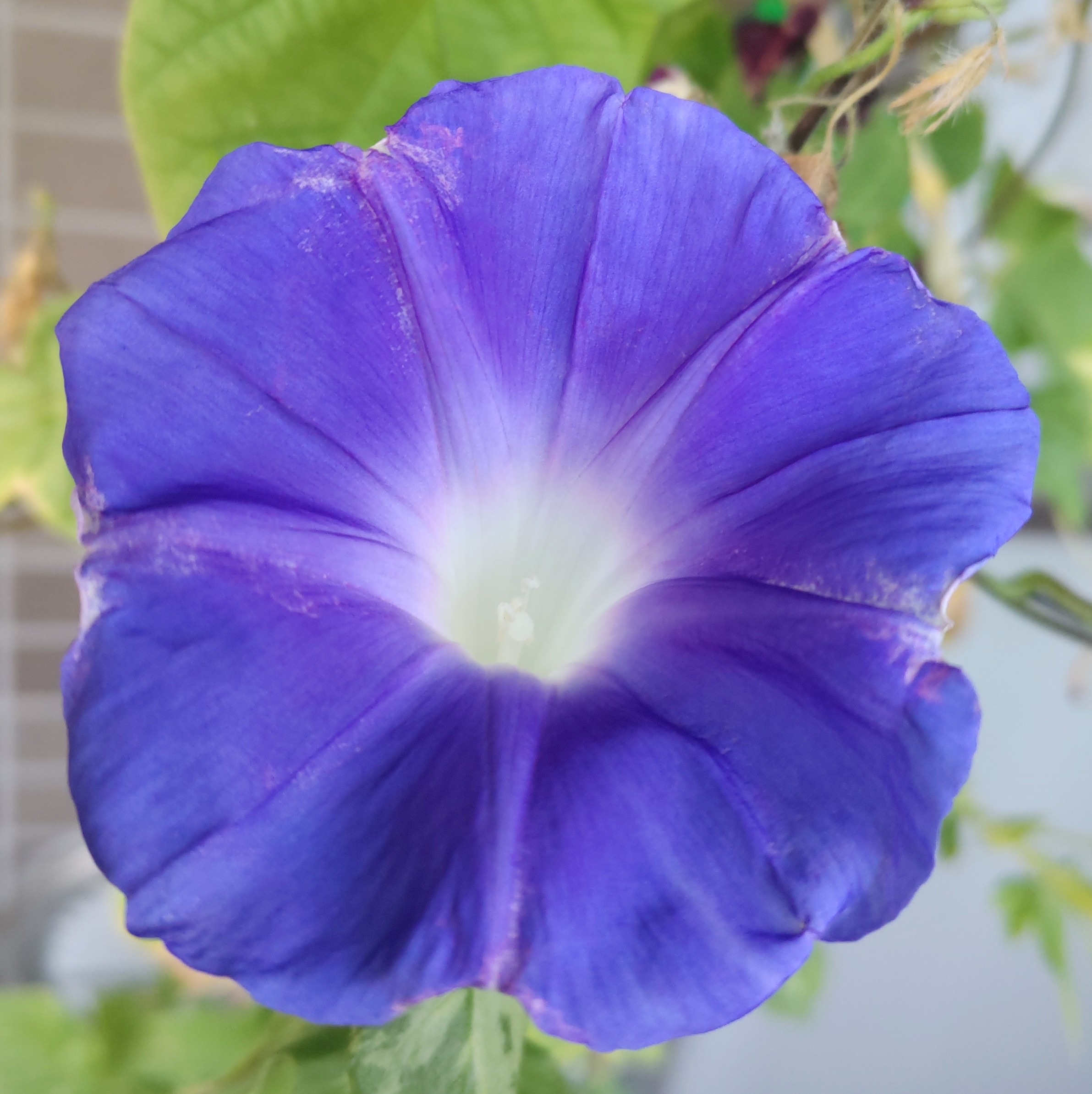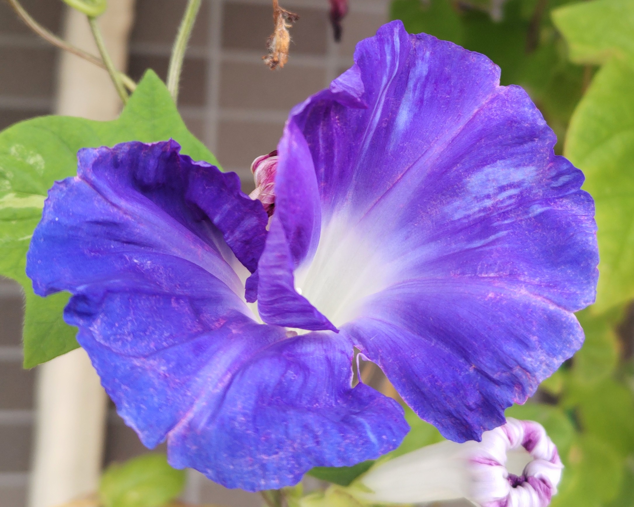 涼しくなっても元気な青いアサガオ、この日は紫のアサガオがお休みだった。