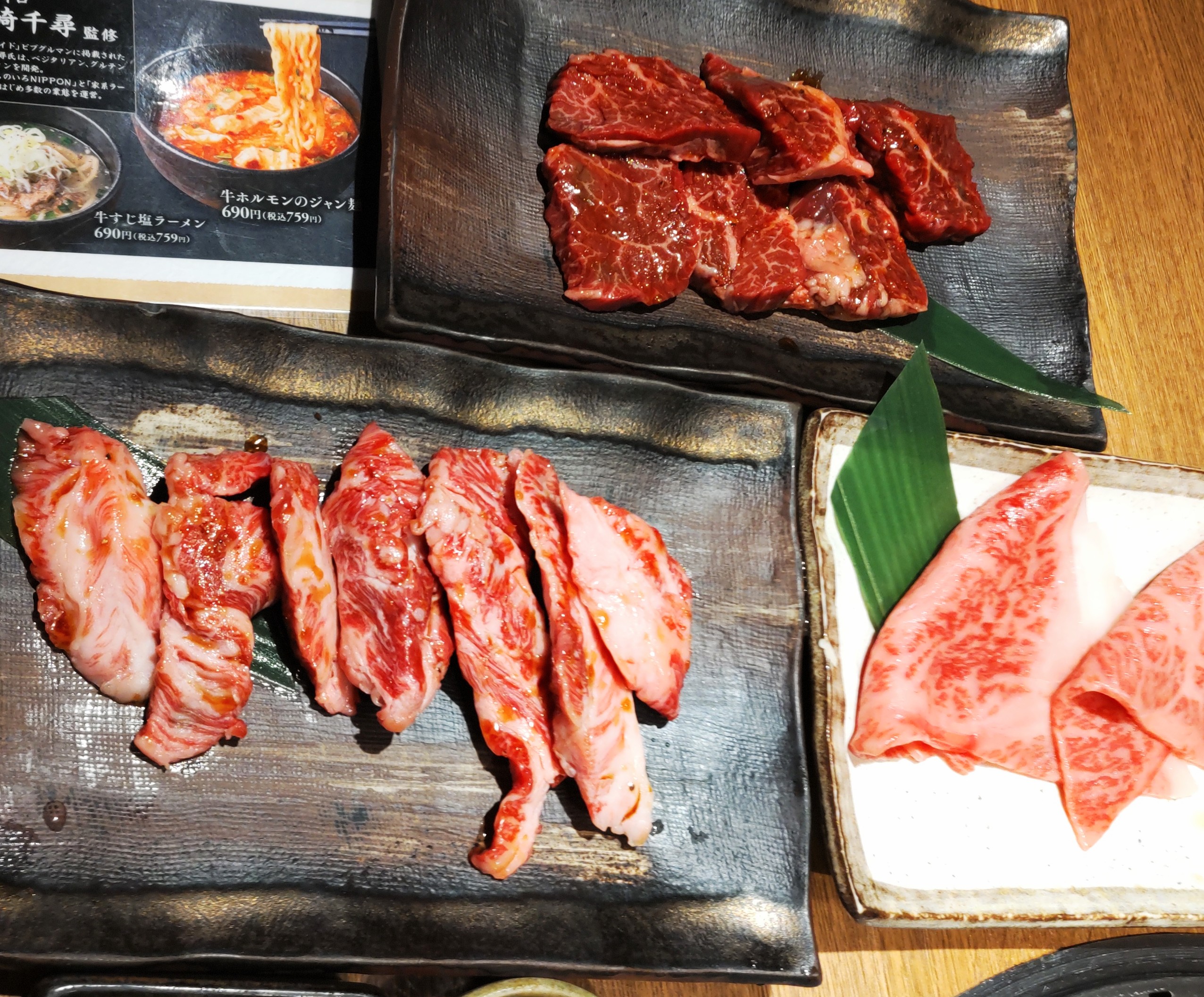 メインディッシュの肉を載せるのを忘れていた(爆)上牛タンに上ハラミ、上ロースと今見ても腹が減りそうなラインナップだ。牛寿司も生ならではの美味しさ抜群だった。