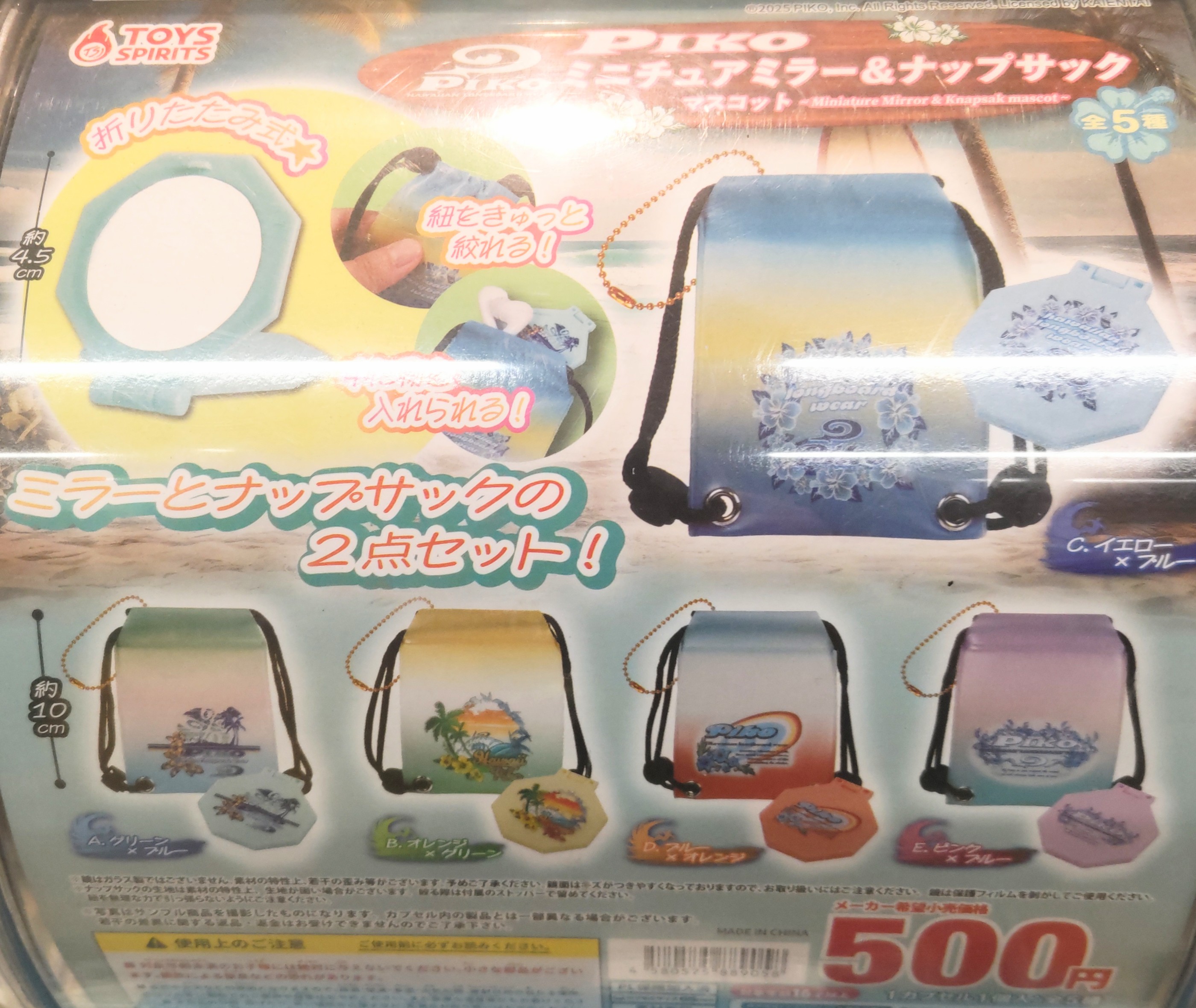 東松戸駅前のガチャでゲット。スーパーの前なのでやや出入りがしにくい(苦笑)PIKOは20代の週5でバイトしていた頃、仕事仲間が持っていたのを思い出す。ミラーはまだ使ってないけど、リュック型の袋は薬入れとしてバッグ内でヒッソリと活躍している。