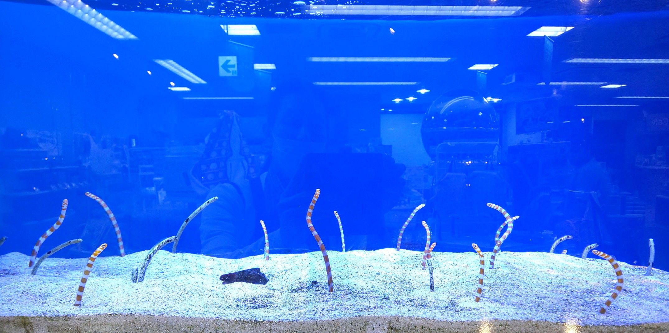 ちなみにチンアナゴを2日目に撮ったのは、1日目にチンアナゴの水槽近くにずっと座ってしゃべってた人たちがいて邪魔だったせいで撮れず、ずらす羽目に。