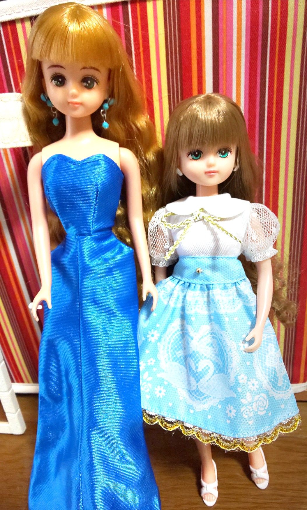 青緑目のパレットFは、ノーブルなお嬢様風なのでこういったワンピが良く似合うのがお気に入り。ジェニーボディにカスタムした方のパレットFも、同じ人形でありながら良い感じでお姉さん風になっている。(青のロングドレスは過去の自作)