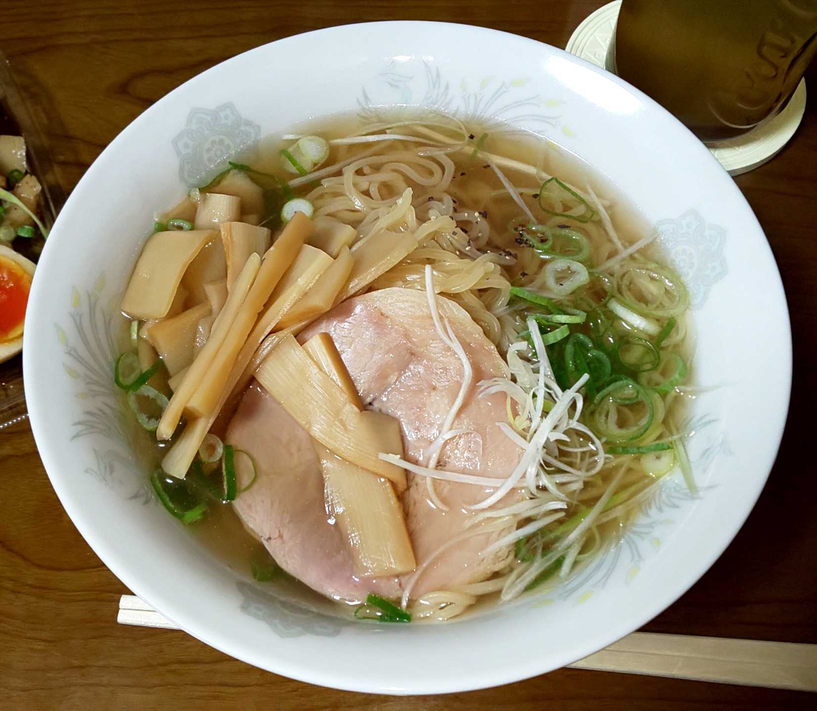 食べてみたら、凄くシンプルなスープで塩味のアッサリを極めたらこうなったっぽい味わいだった。ちなみにラーメンの具は別売り(近所のスーパーでゲット)なので注意。
