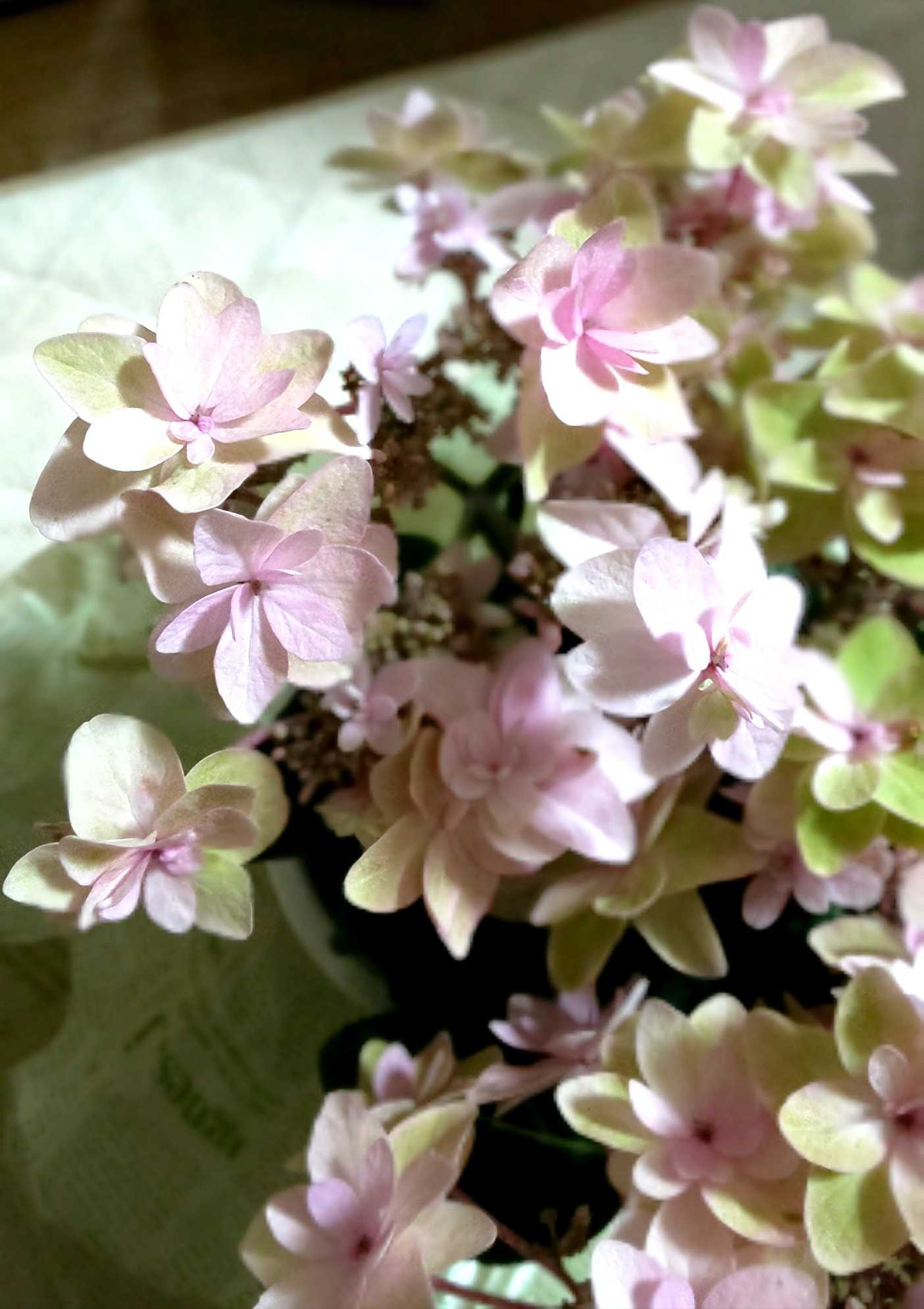 街角で見かけるアジサイとはずいぶん違うけど、この黄緑がかった花も交じっている所が花見団子っぽくて(?)特に気に入っている。